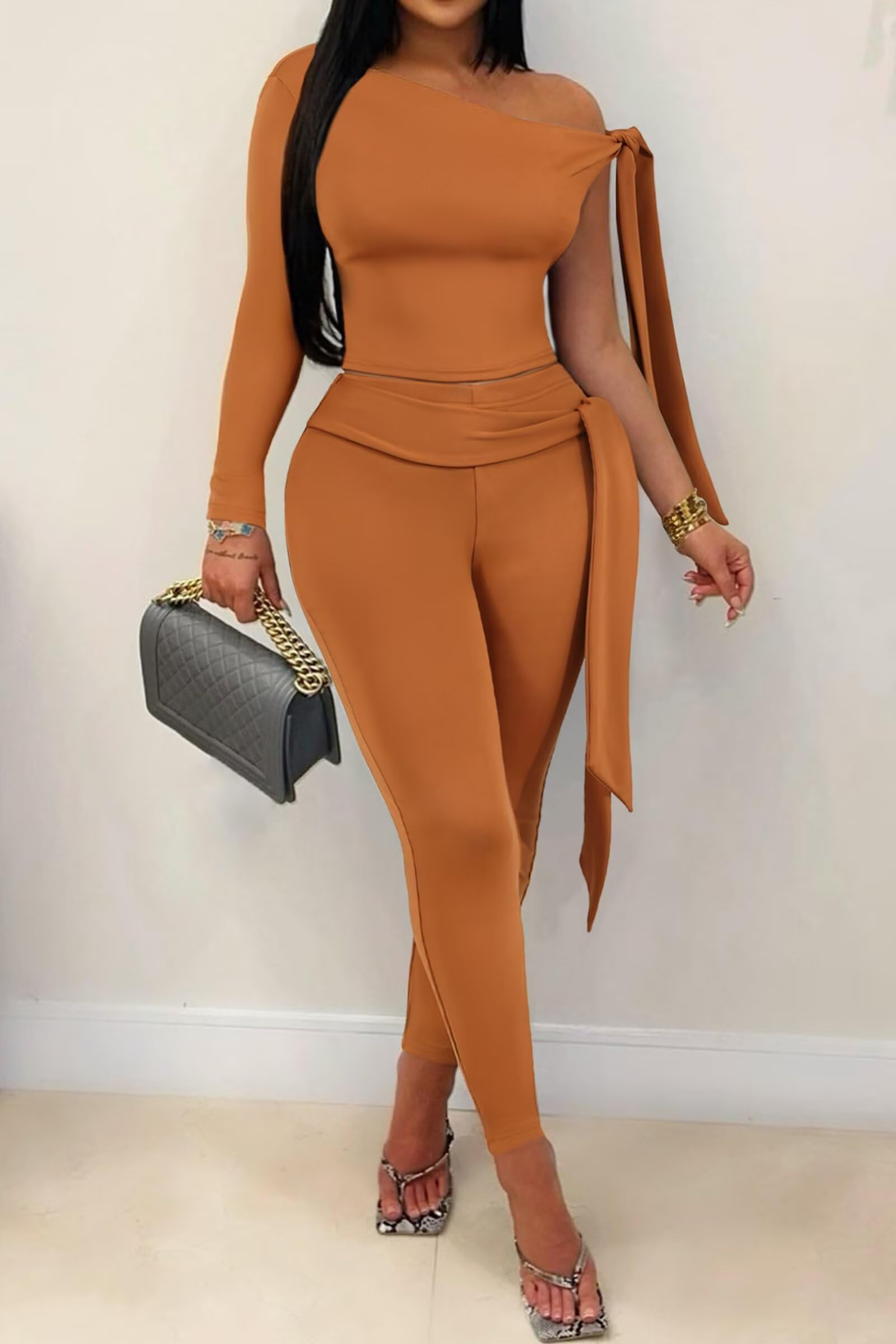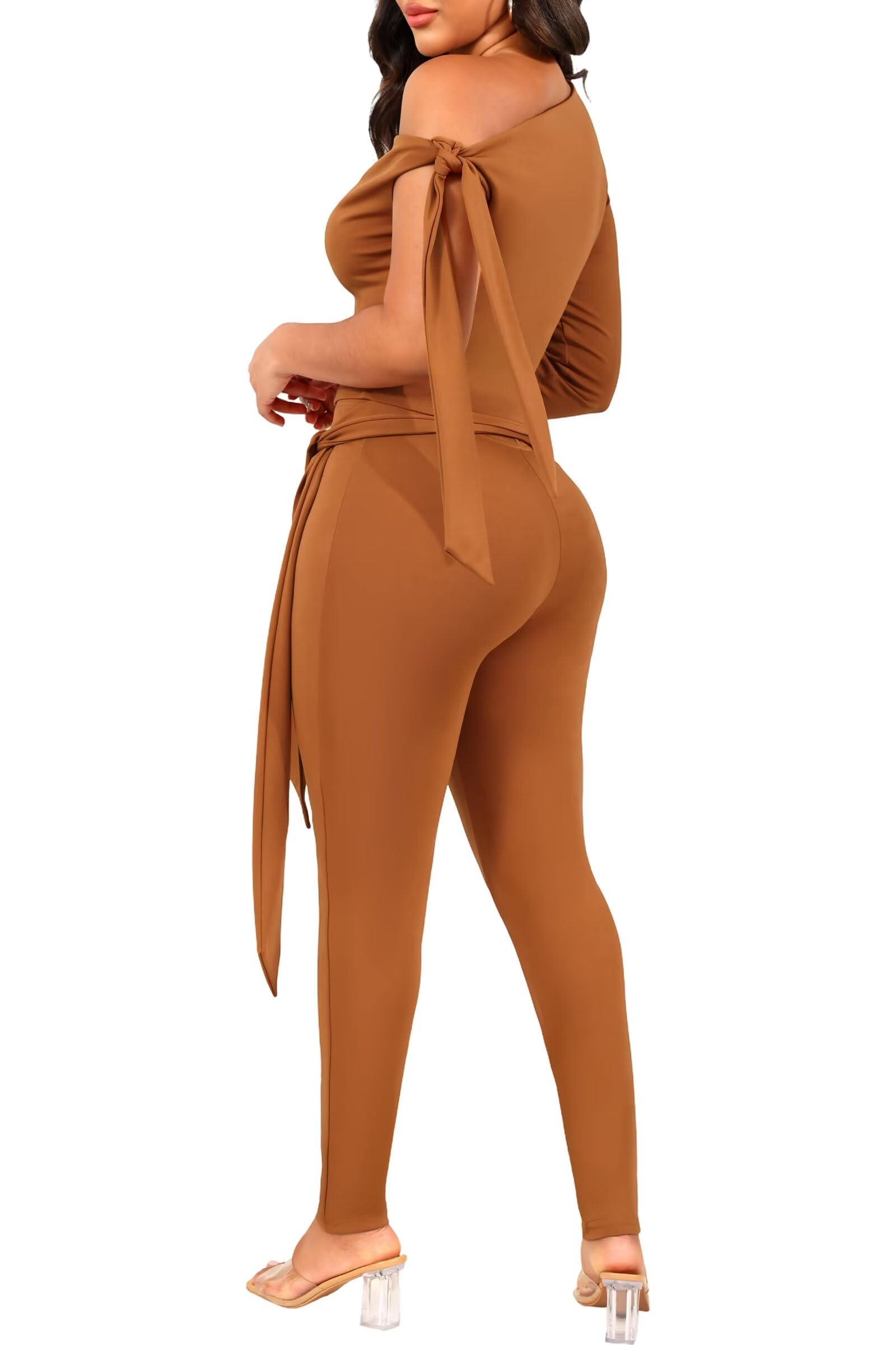 Women One Shoulder Pants Set Club Brown X-Large 2