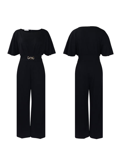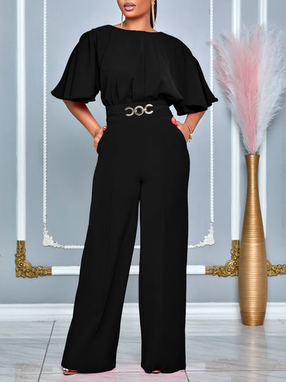 Round Neck Solid Color Wide-Leg Jumpsuit