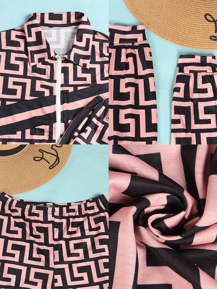 Feature: Geometric, camouflage, leopard, striped, long sleeve, zip up, bodycon, jackets, pants suit, two-piece outfits.