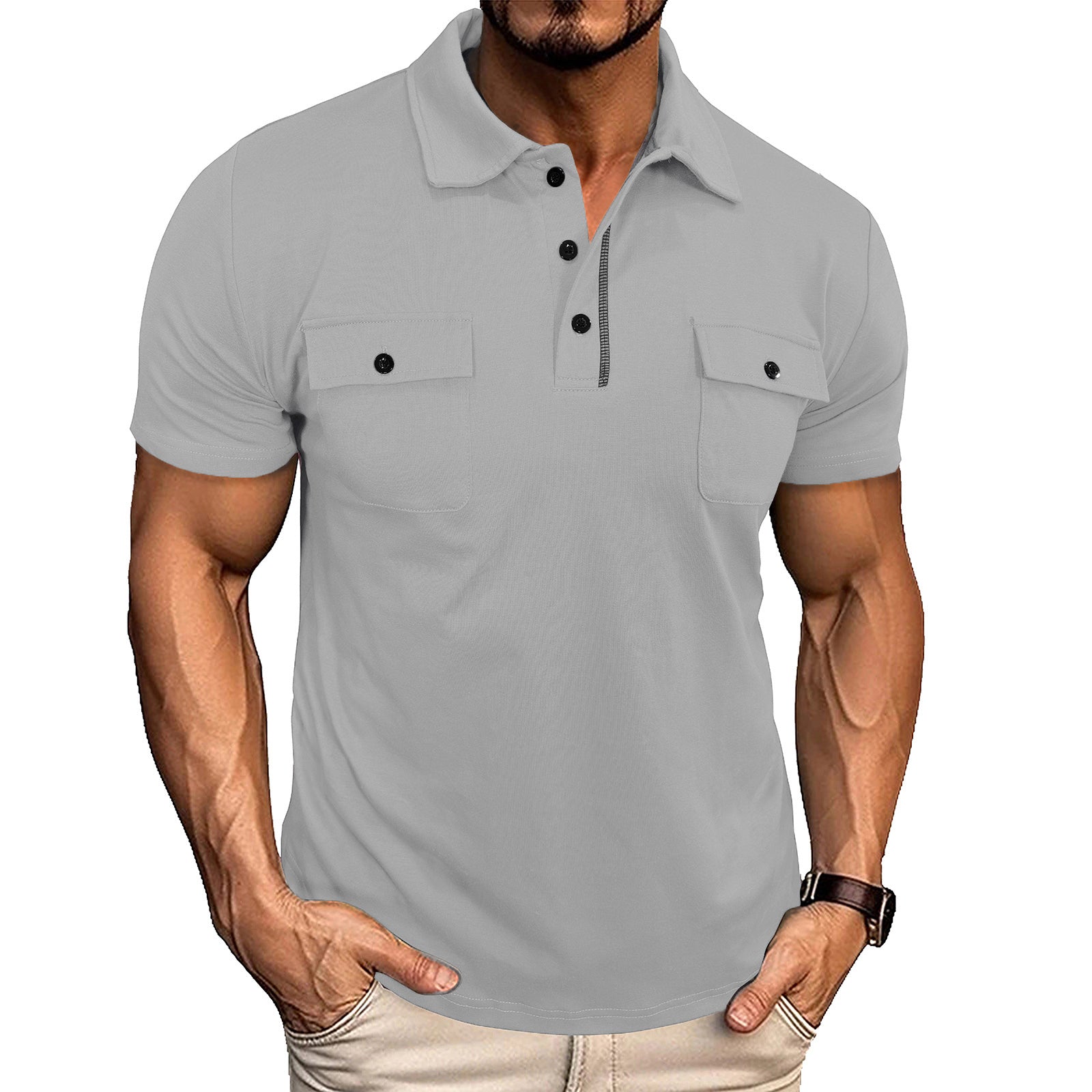 Mens Casual Polo Shirt with Pocket Light Grey 3X-Large 2