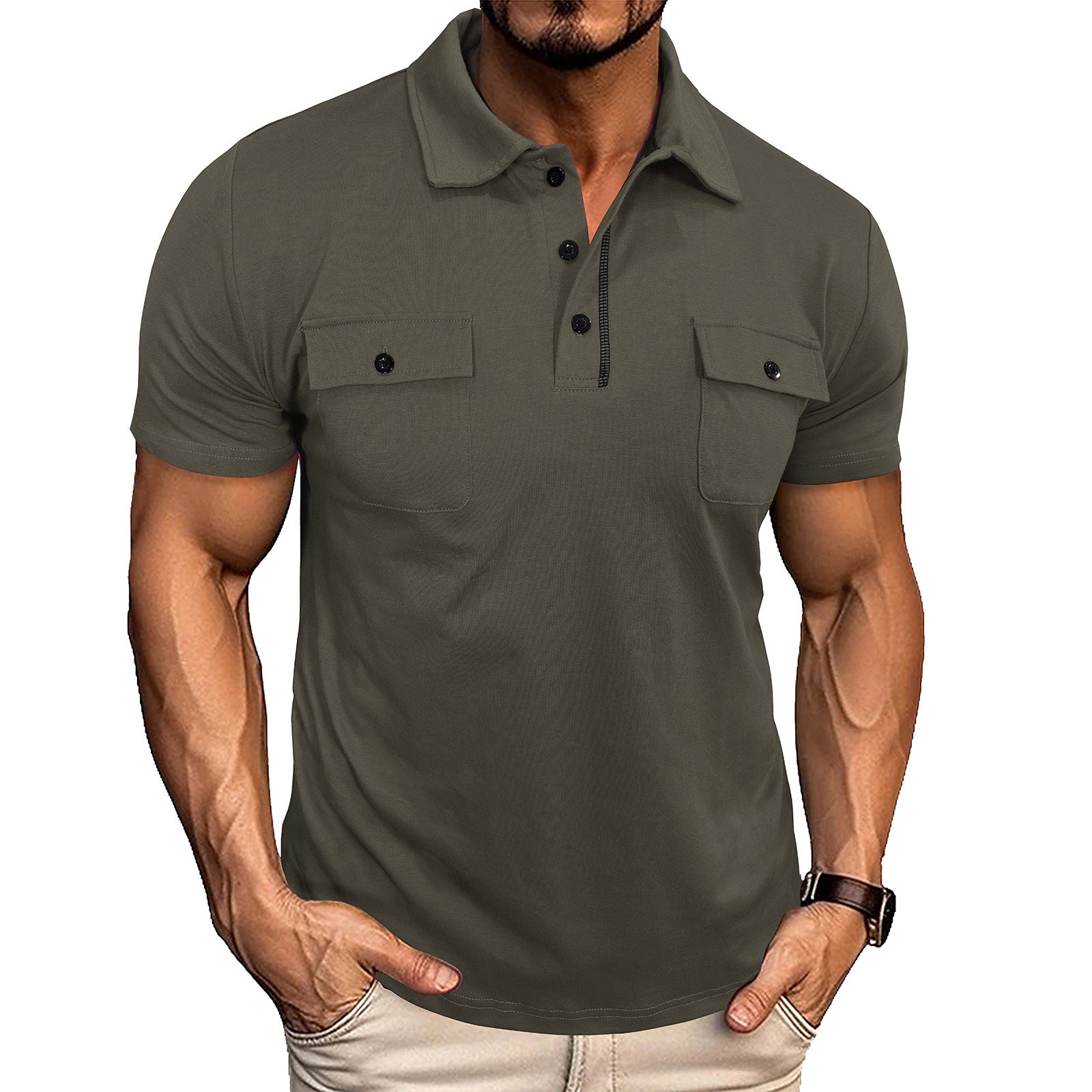 Mens Casual Polo Shirt with Pocket Army Green Large 2