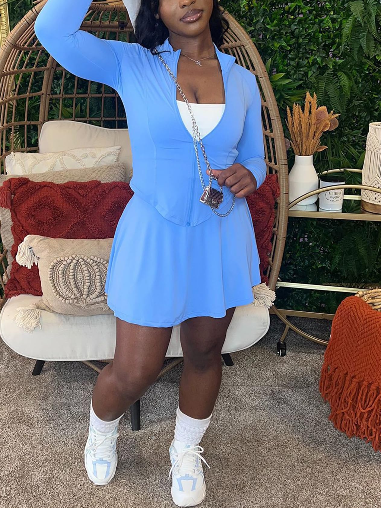 Jacket Top Mini Skirts 2 Pcs Outfit Blue X-Large 1