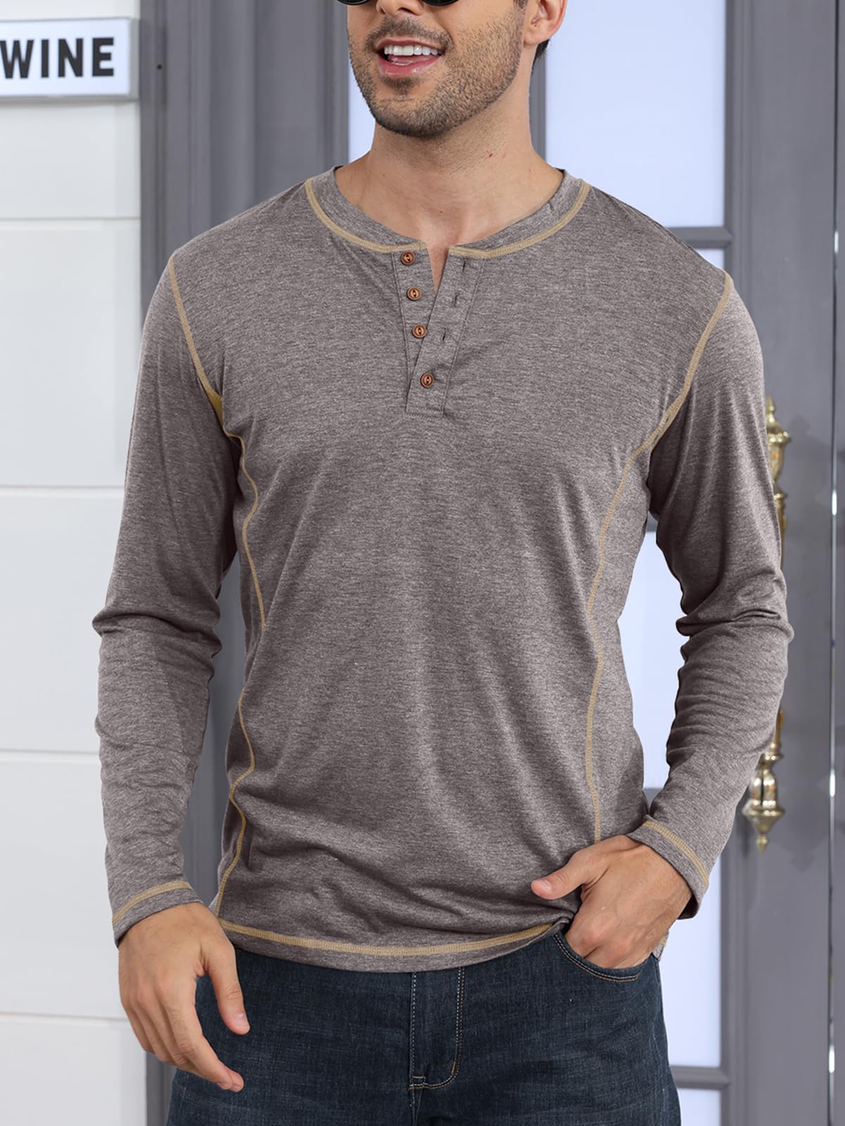 | Mens Long Sleeve Henley Shirts | Grey | Medium | 5 |