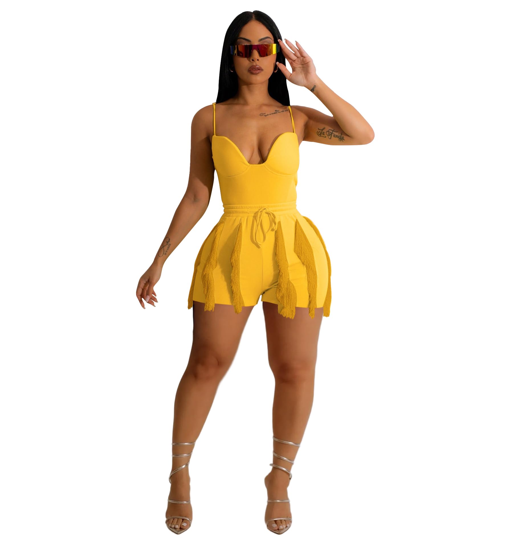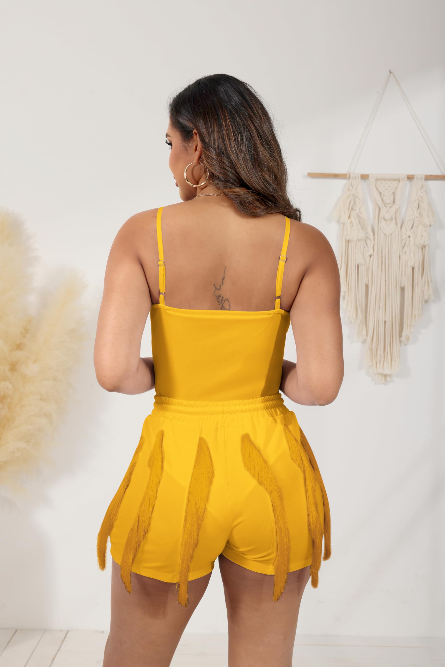 summer tassel shorts sets Yellow XX-Large 7