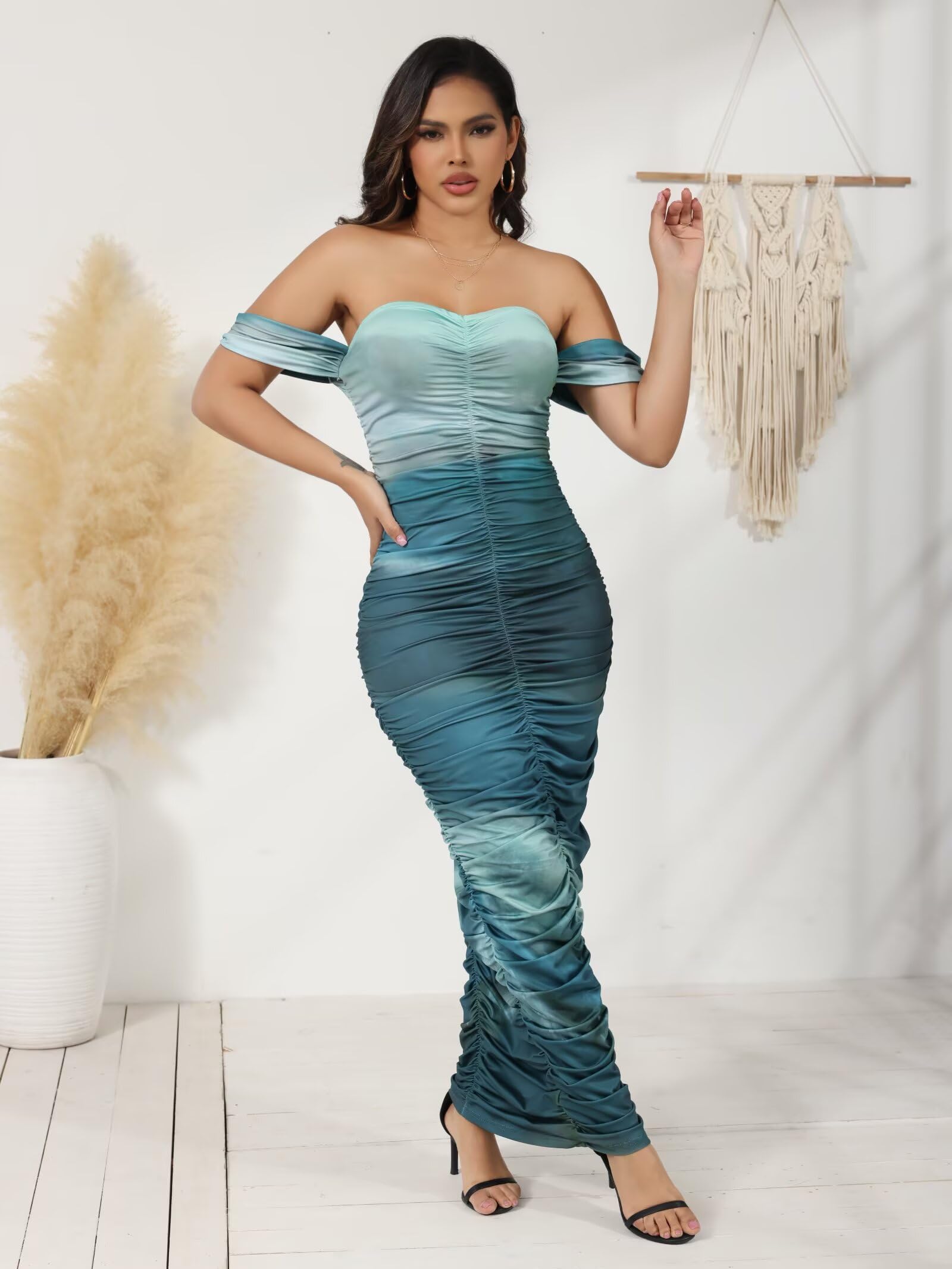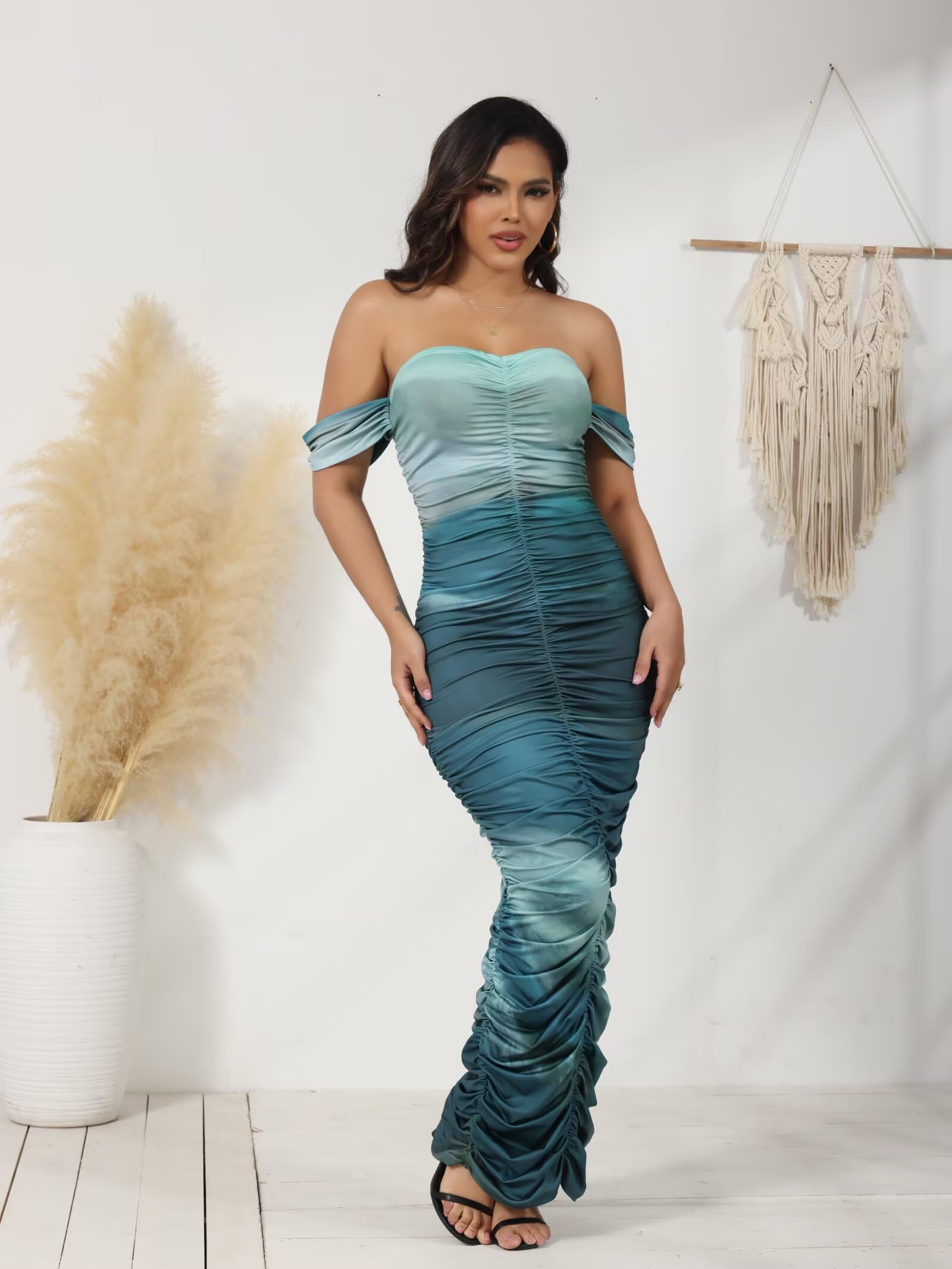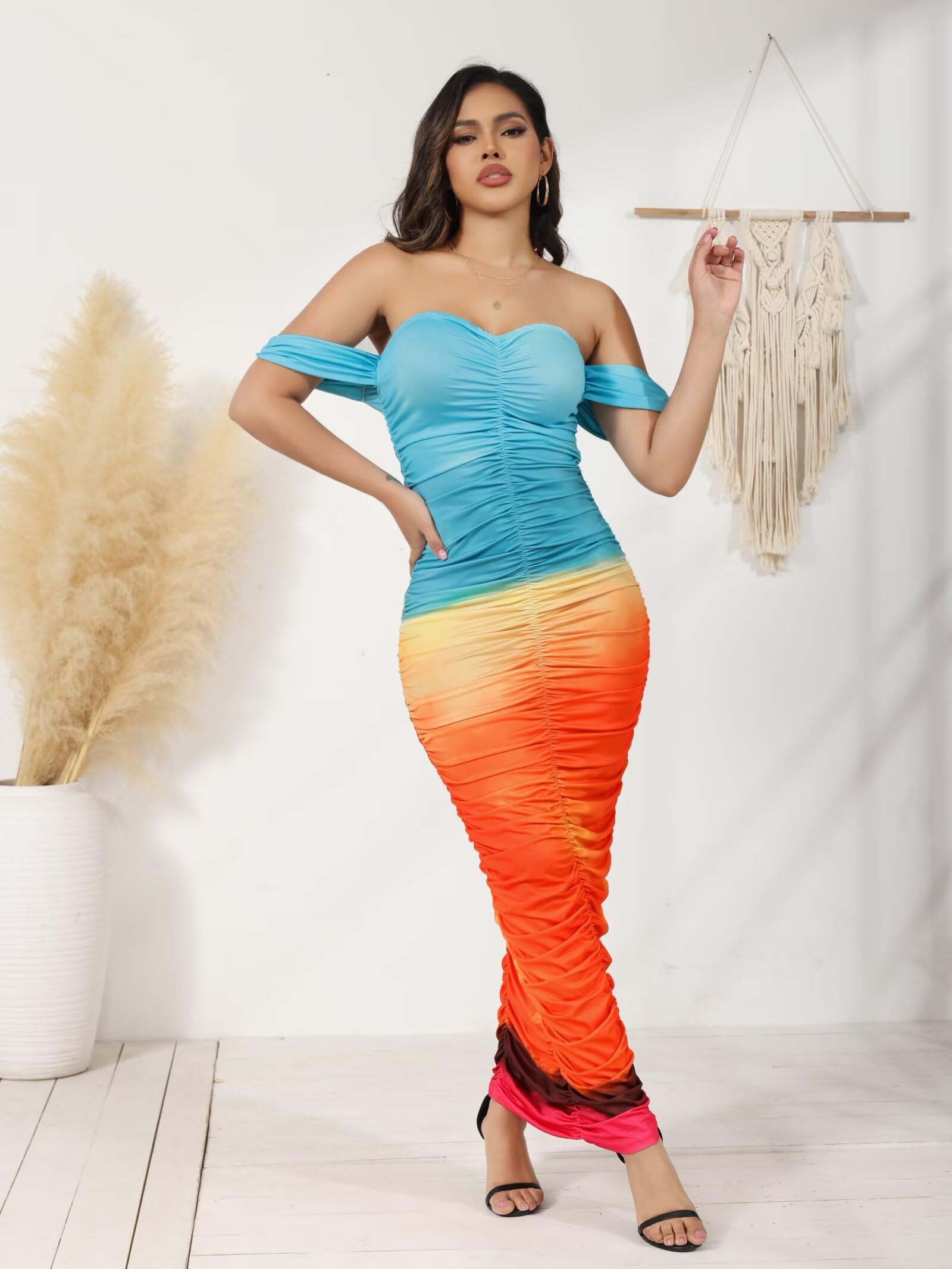 Womens Ruched Maxi Dresses Summer Multi X-Large 1