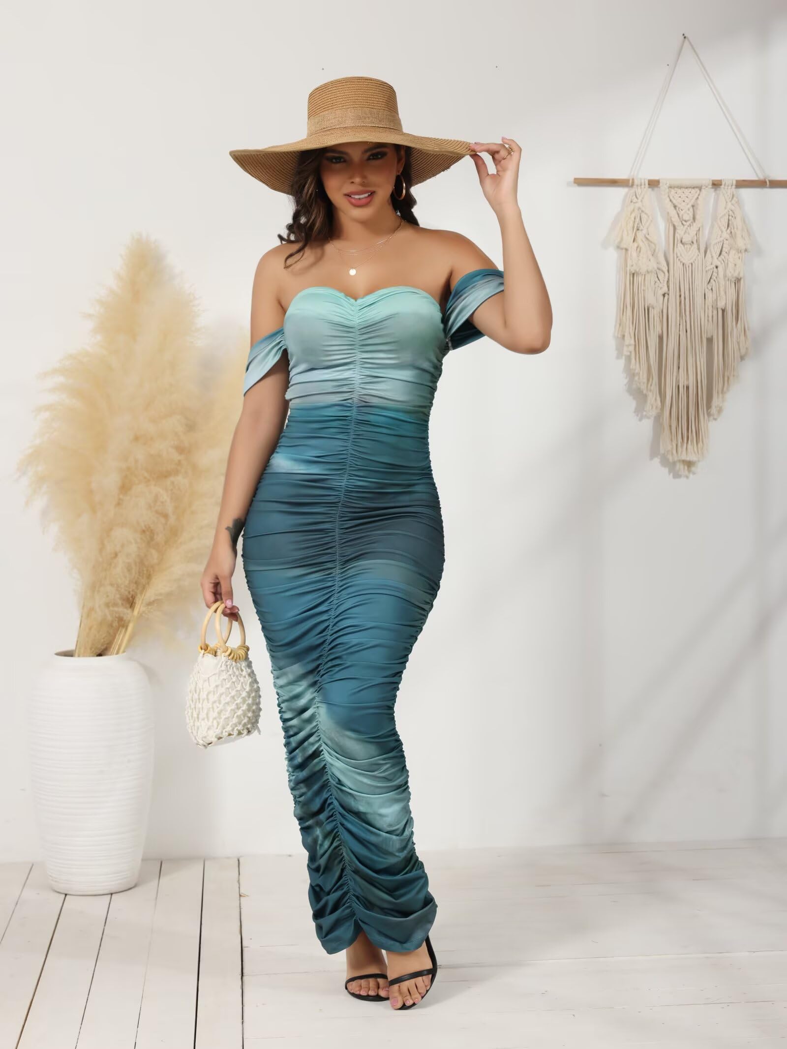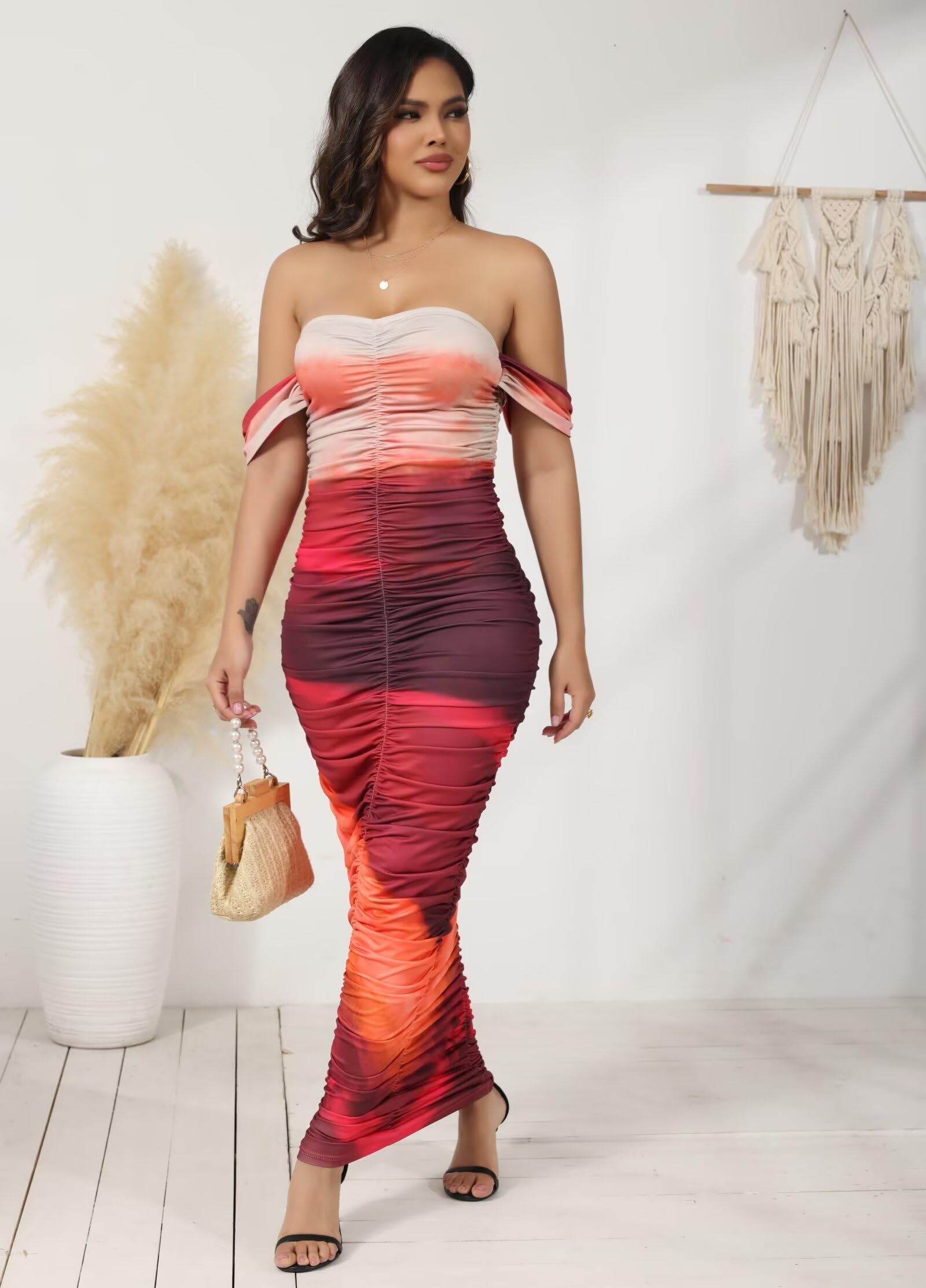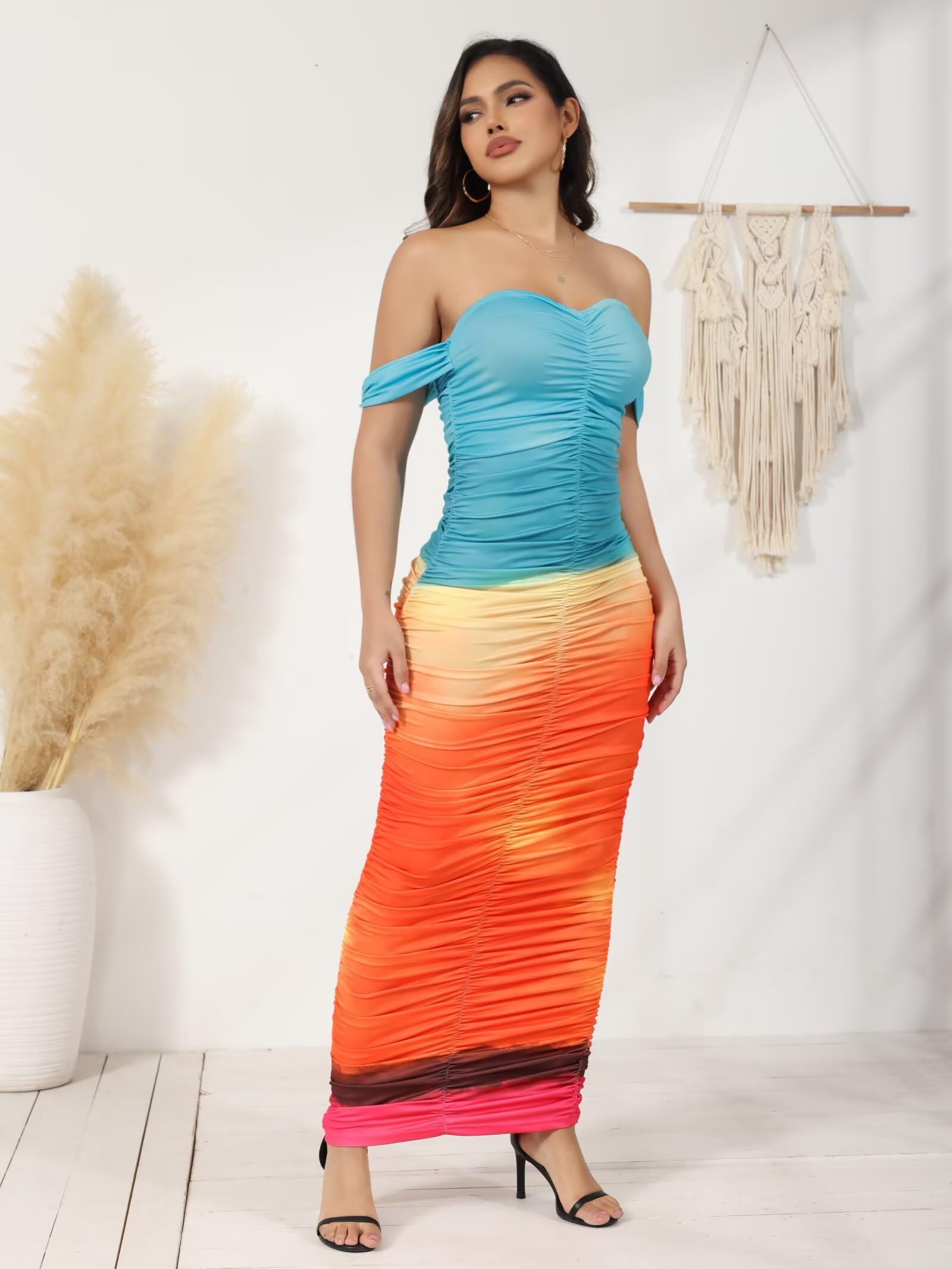 Womens Ruched Maxi Dresses Summer Multi Small 5