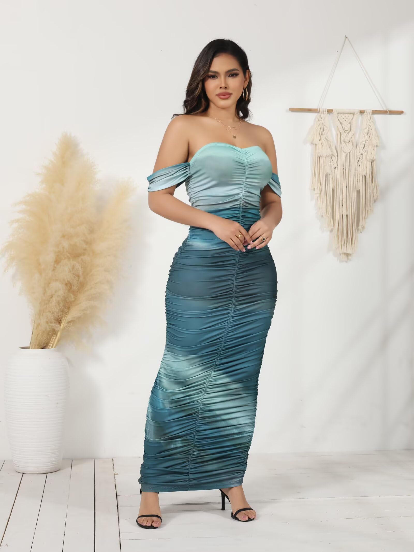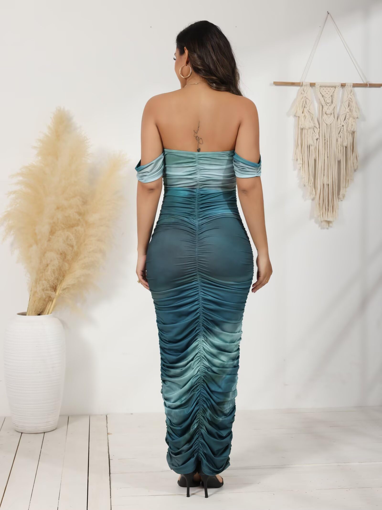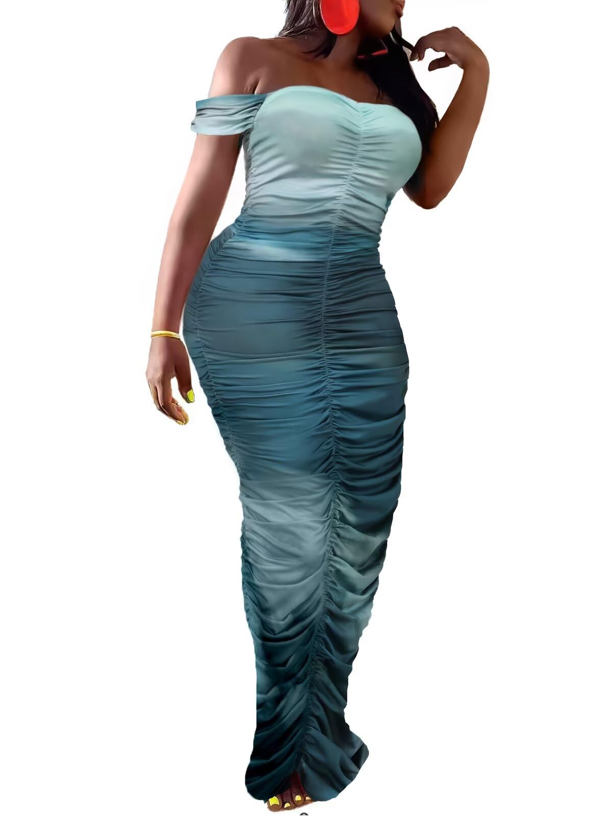 Womens Ruched Maxi Dresses Summer Multi Small 5