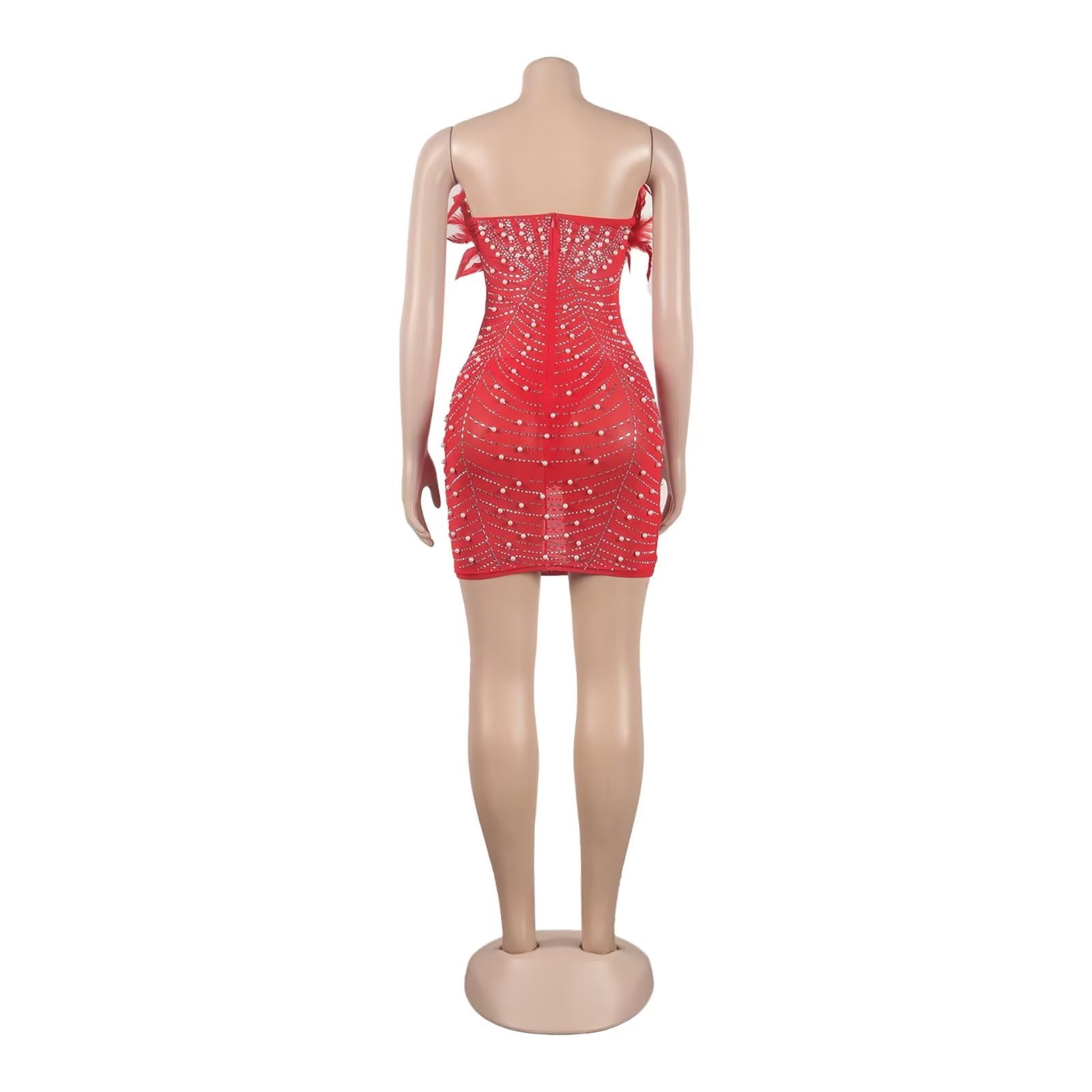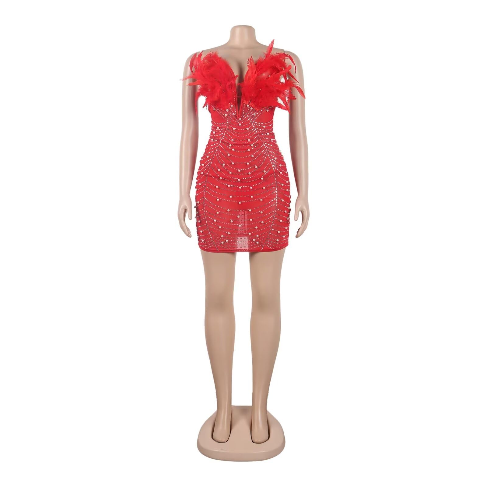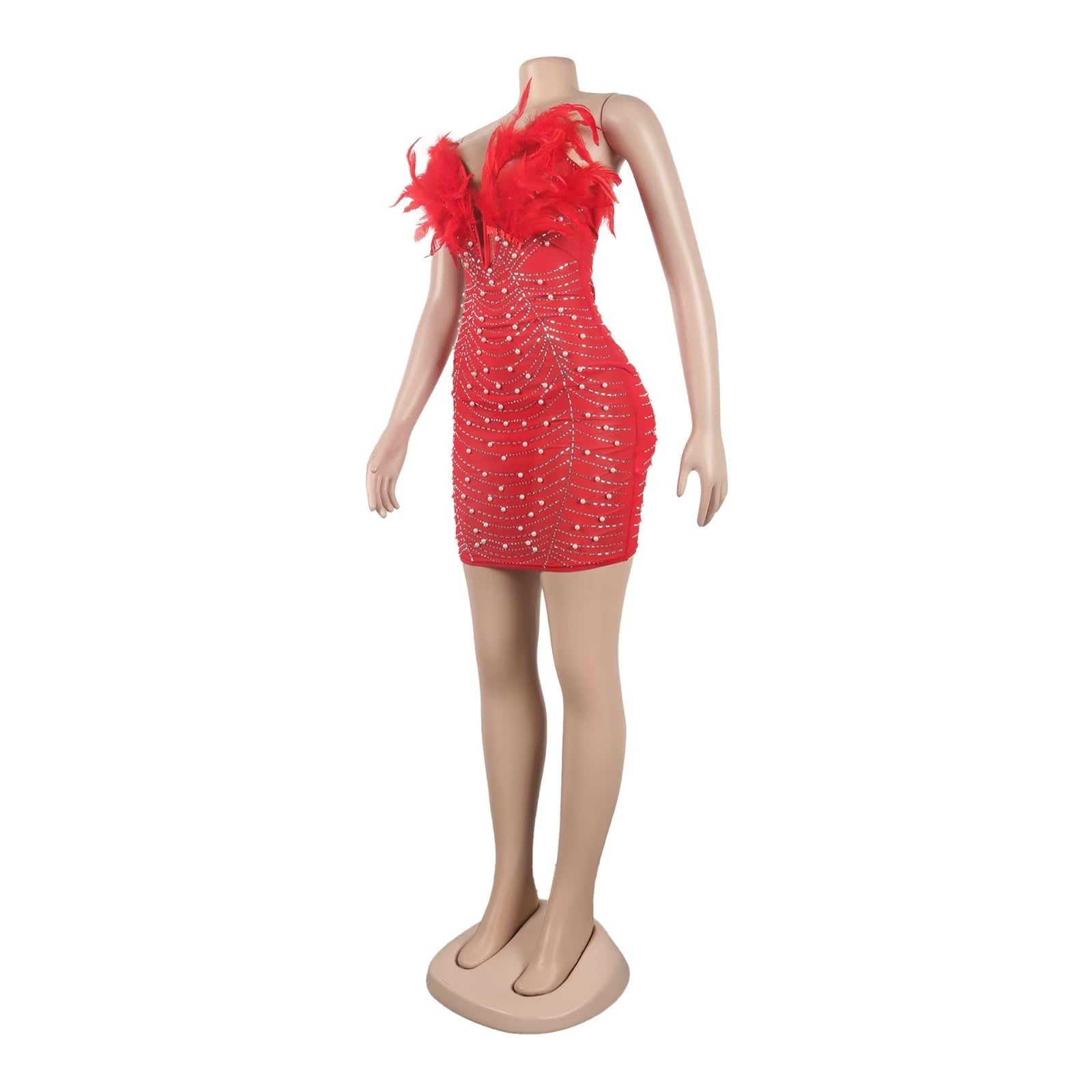sexy feather bodycon mini dress Apricot XX-Large 5