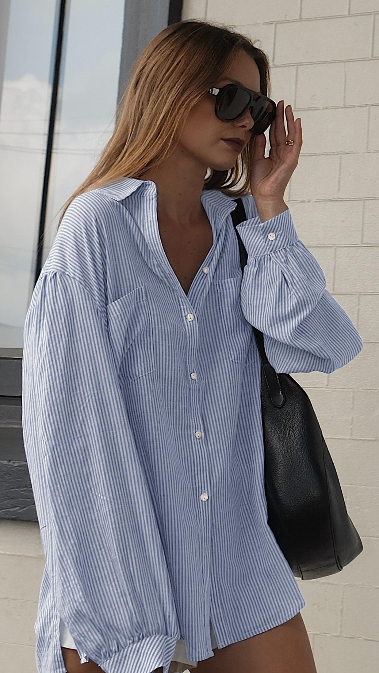 Womens Button Down Striped Shirts Dark Blue Large 5