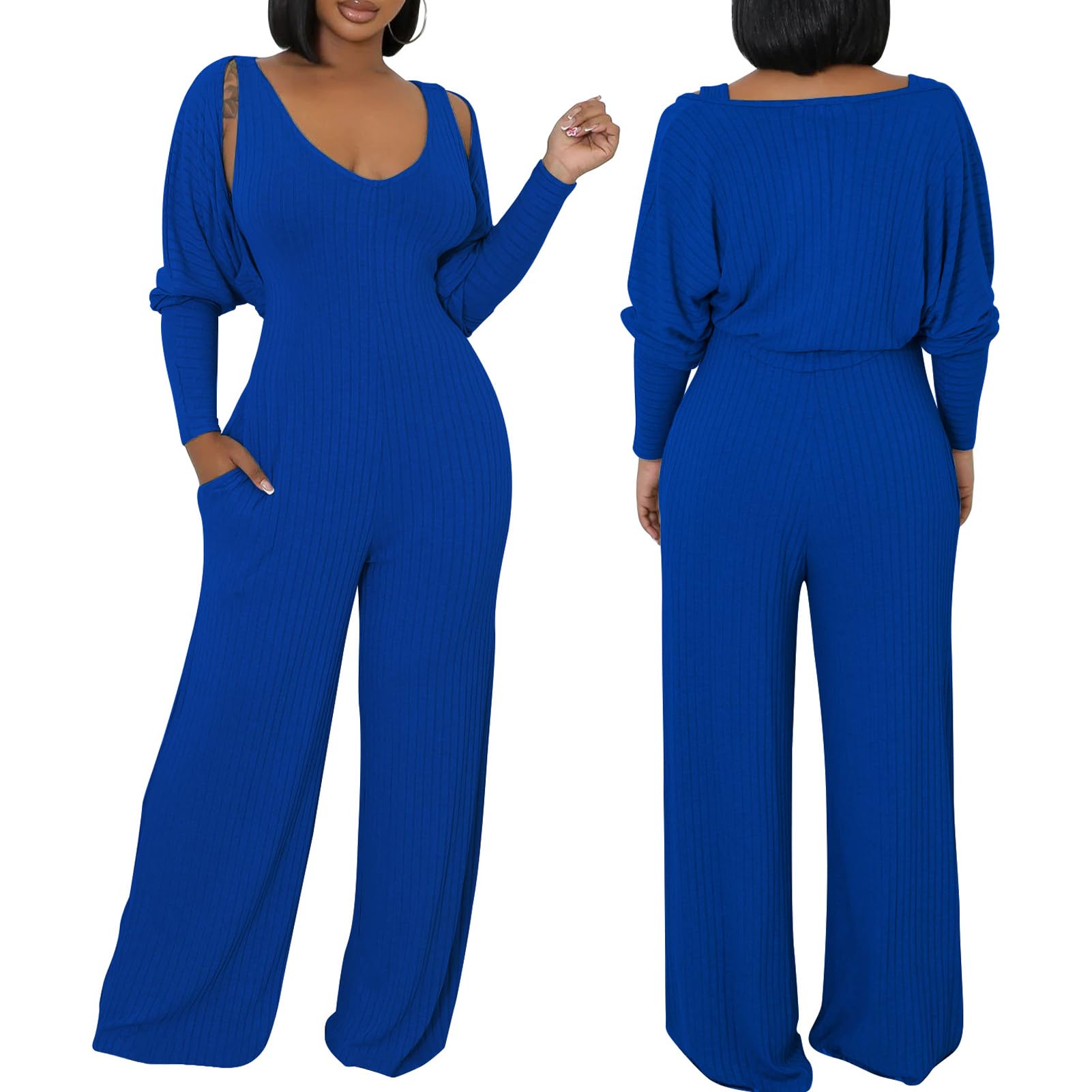 | Womens V Neck Wide Leg Jumpsuits | Blue | XX-Large | 2 |