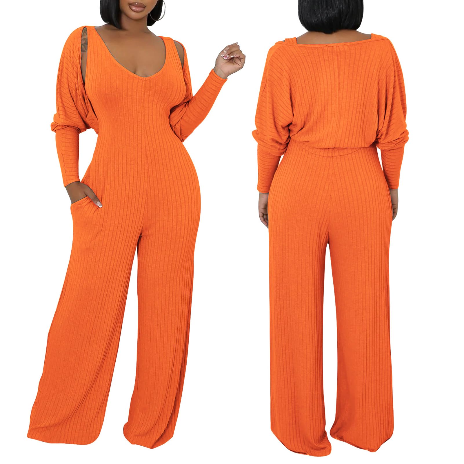| Womens V Neck Wide Leg Jumpsuits | Orange | Small | 3 |