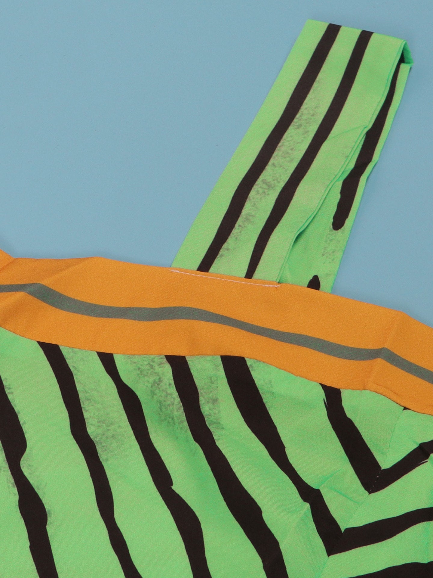 Mono de pierna ancha con bolsillos y estampado de tirantes