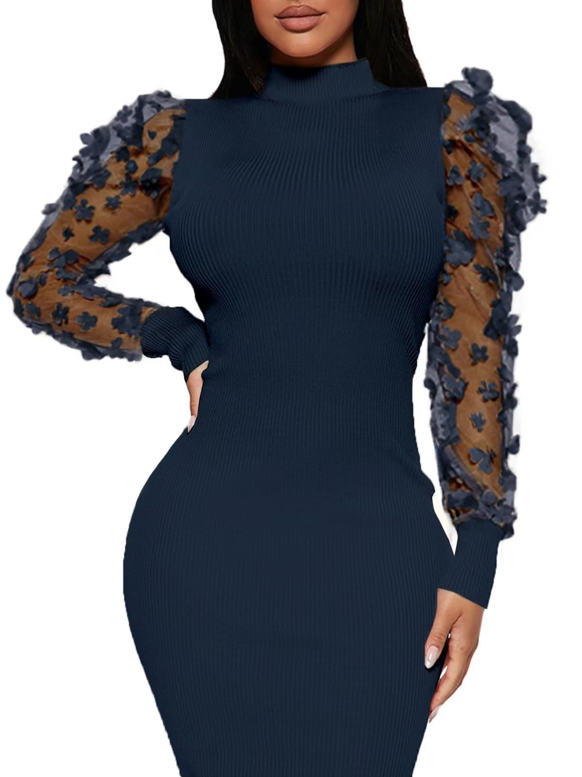 | women short sleeve puff midi dress | Deep Blue | Large | 2 |
