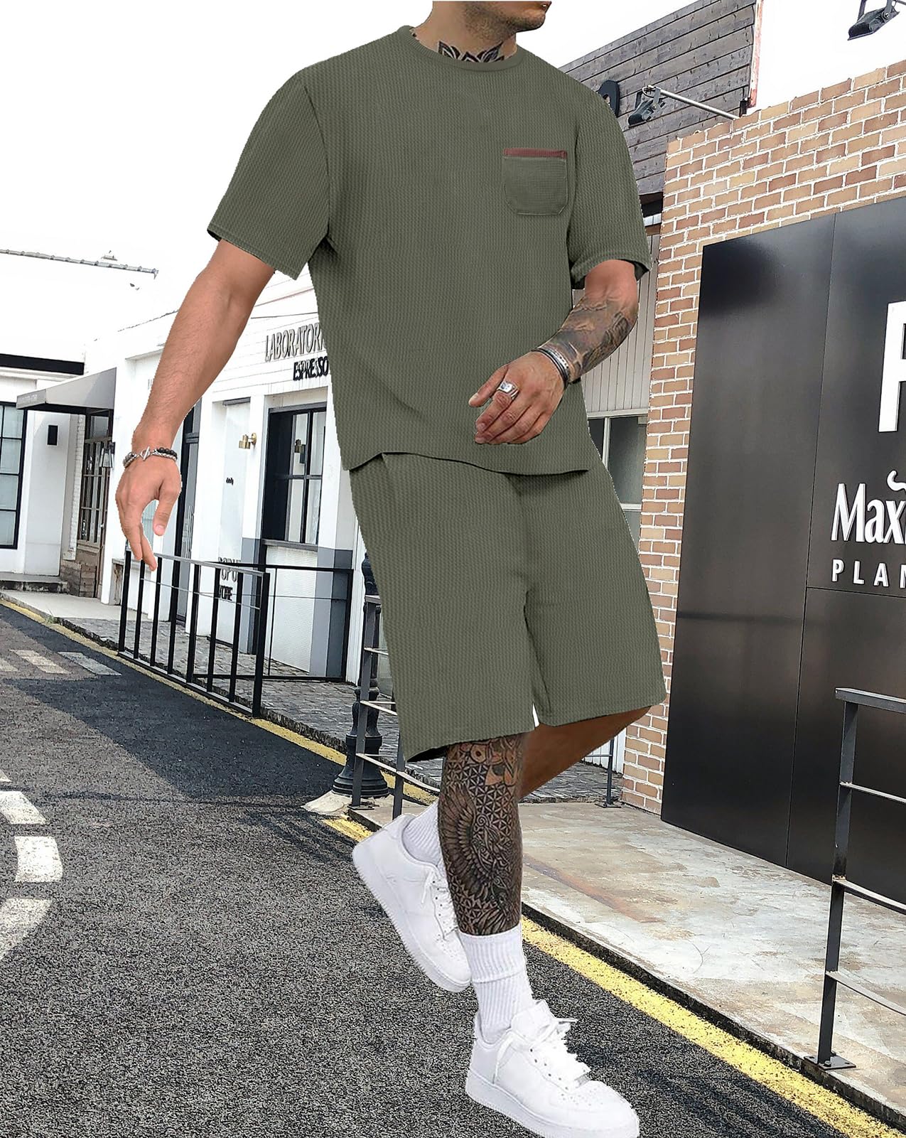 Men 2 Piece Short Set Brown 3X-Large 1