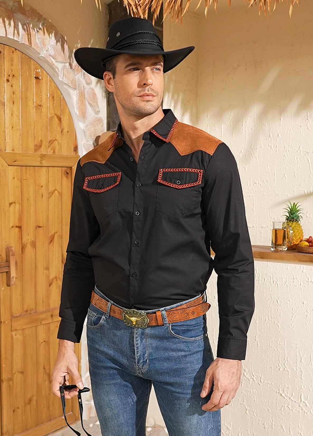 Men's Western Cowboy Shirt Black 3X-Large 3