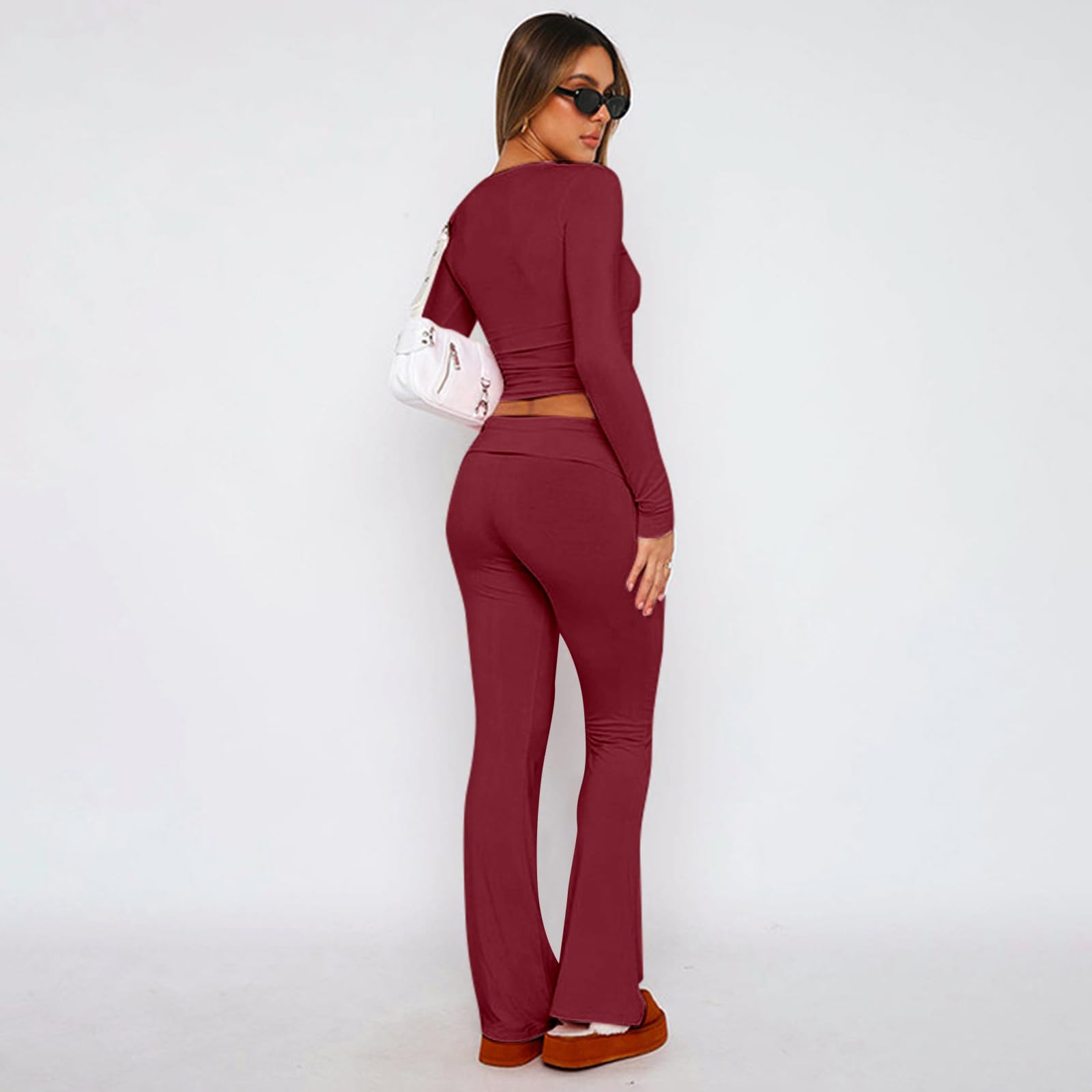 Women's 2 Piece Lounge Outfits Burgundy X-Large 4