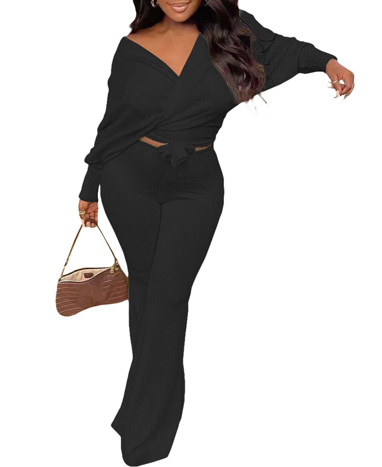 | Ribbed 2 Piece Top Long Pants Set | Black | Small | 3 |