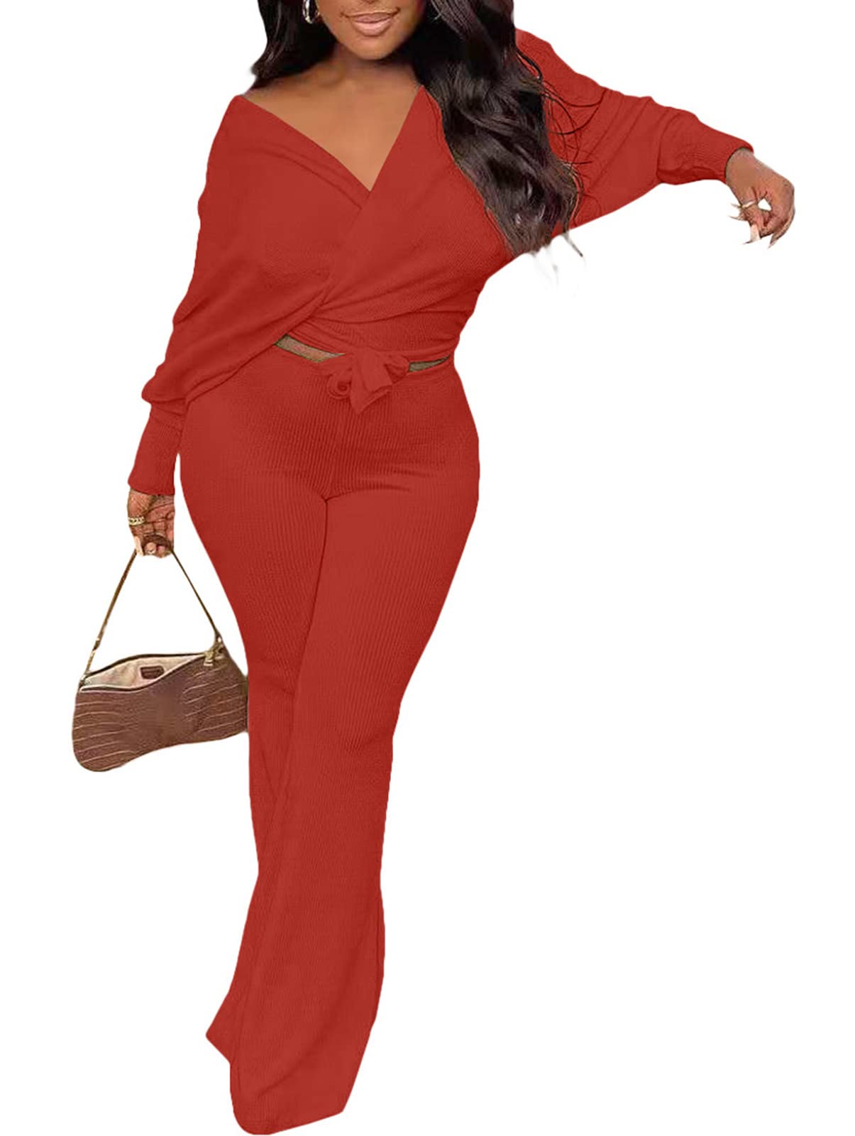 | Ribbed 2 Piece Top Long Pants Set | Red | Small | 4 |