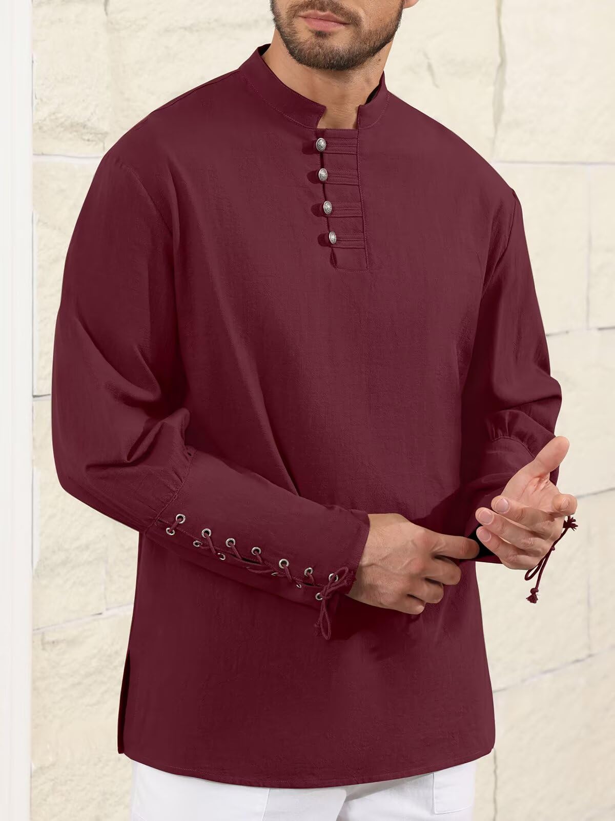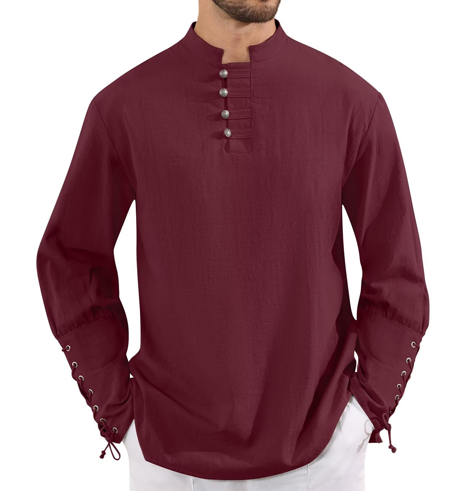 Viking Pirate Renaissance Linen Top Wine Red XX-Large 1