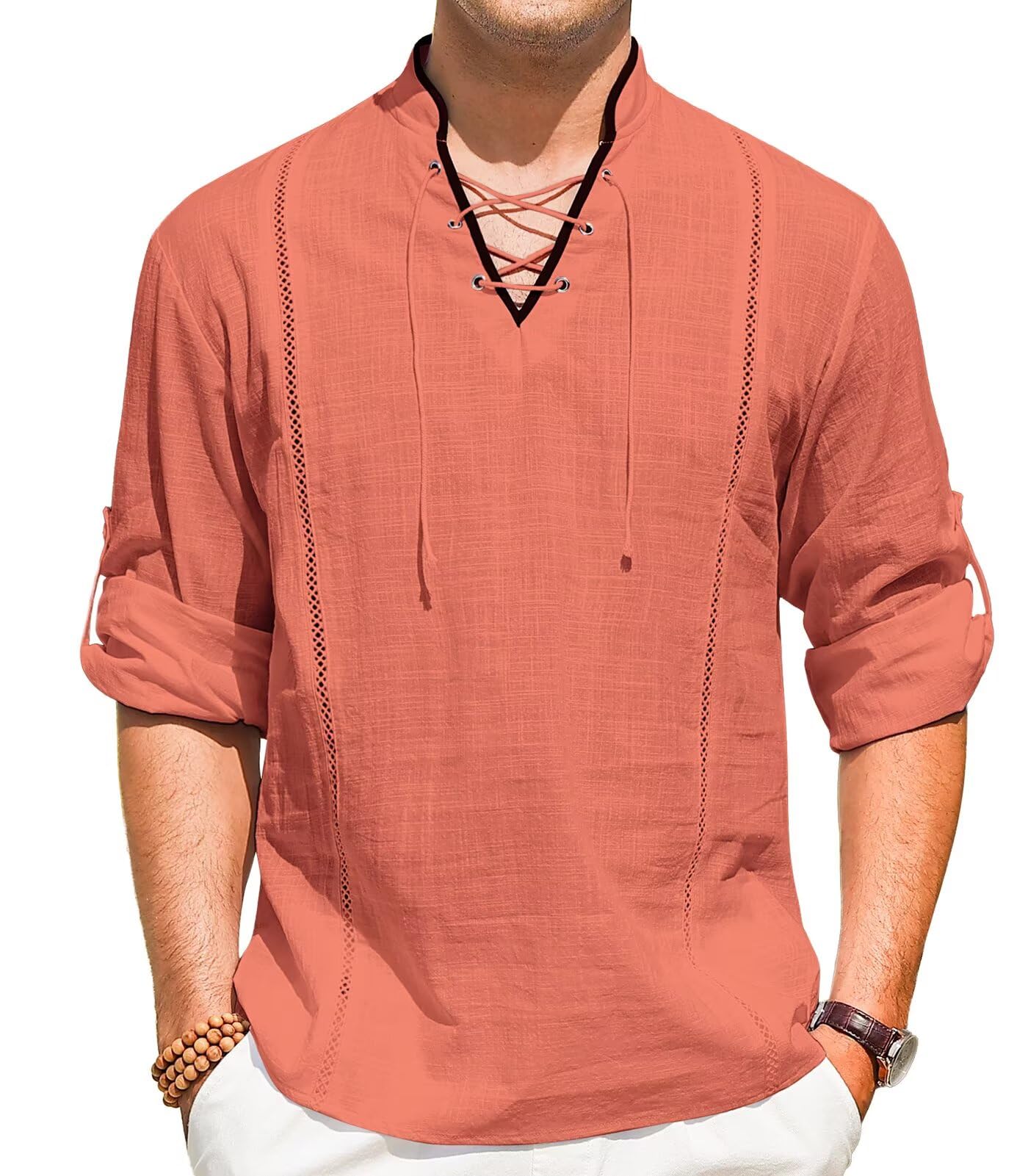 Viking Pirate Renaissance Linen Top Orange 3X-Large 10