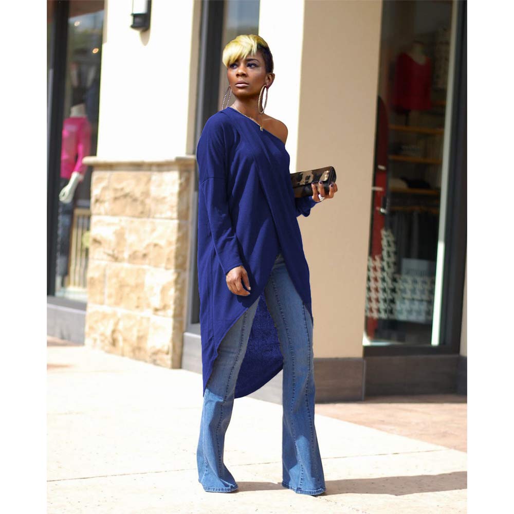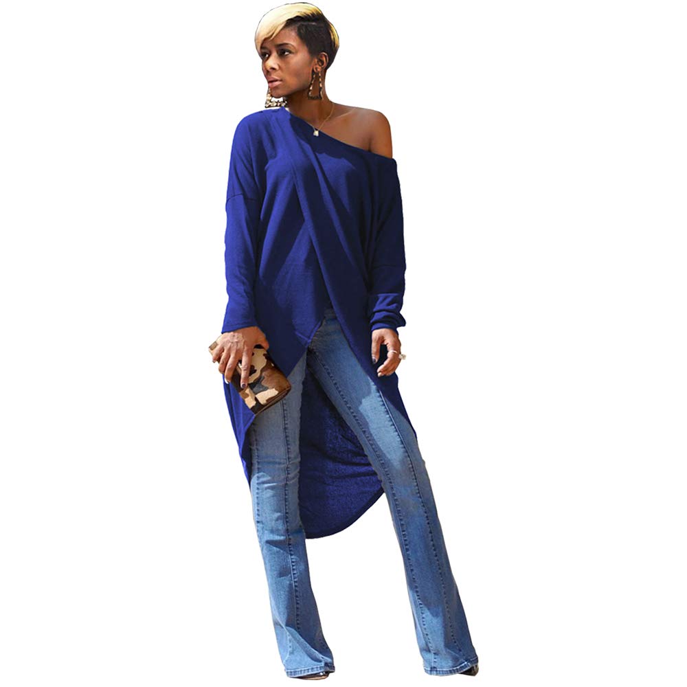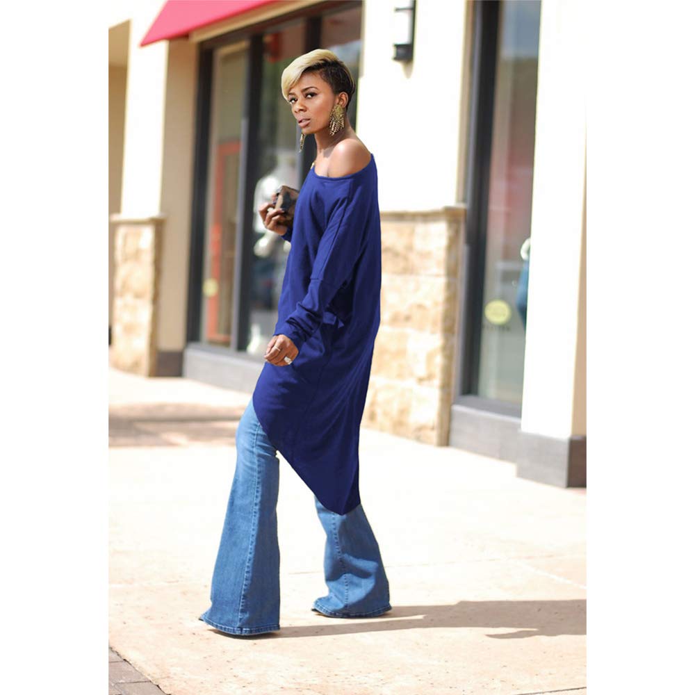 Women Sexy Off Shoulder Tunic Dress B-blue Medium 4