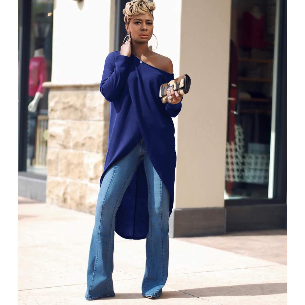 Women Sexy Off Shoulder Tunic Dress B-blue Small 1