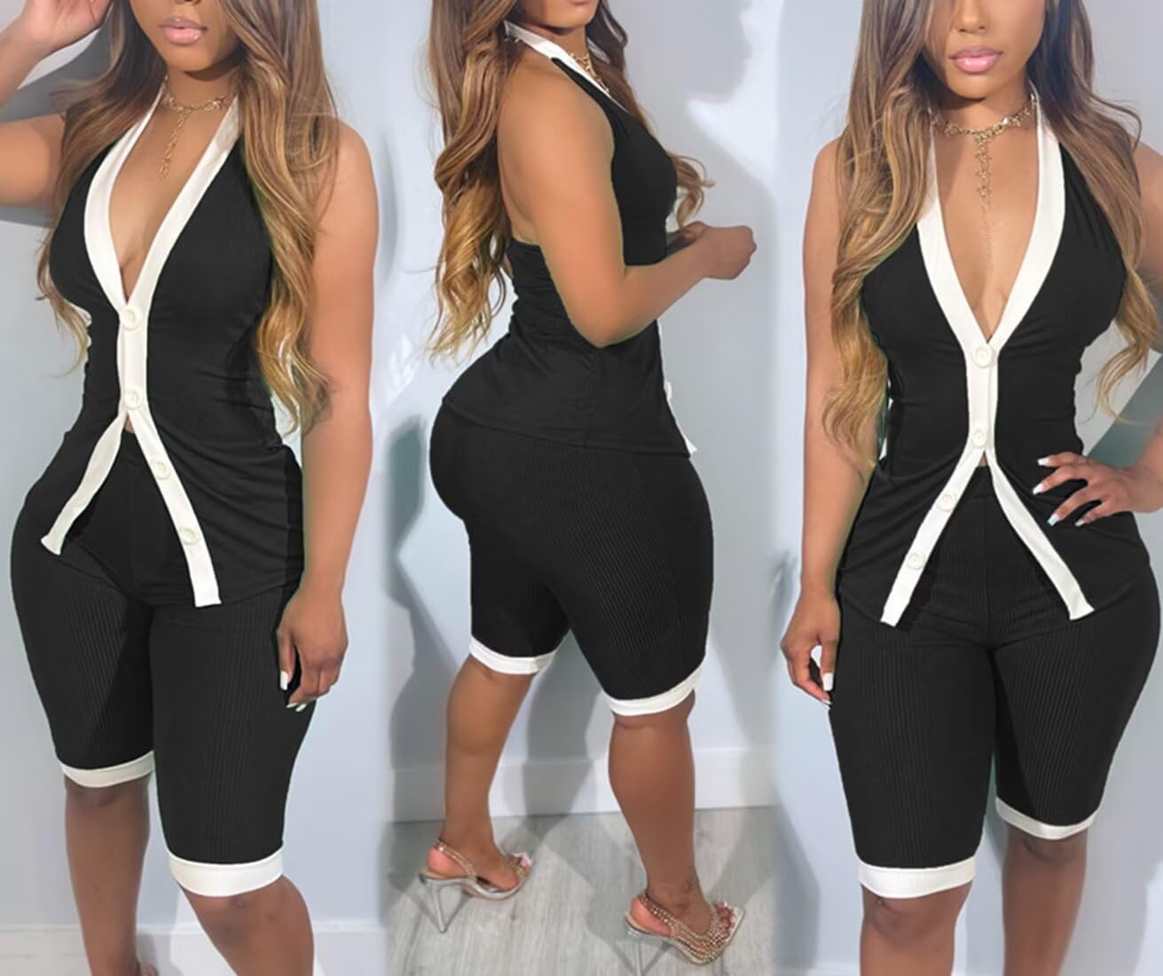 Womens Sexy 2 Piece Y2K Shorts Set Black XX-Large 6