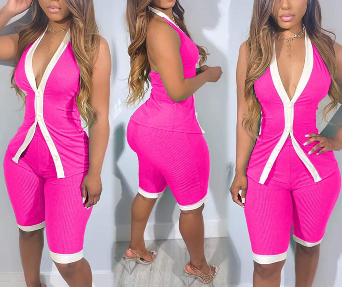Women 2 Piece Shorts Set Y2K Outfit Rose Red X-Large 5