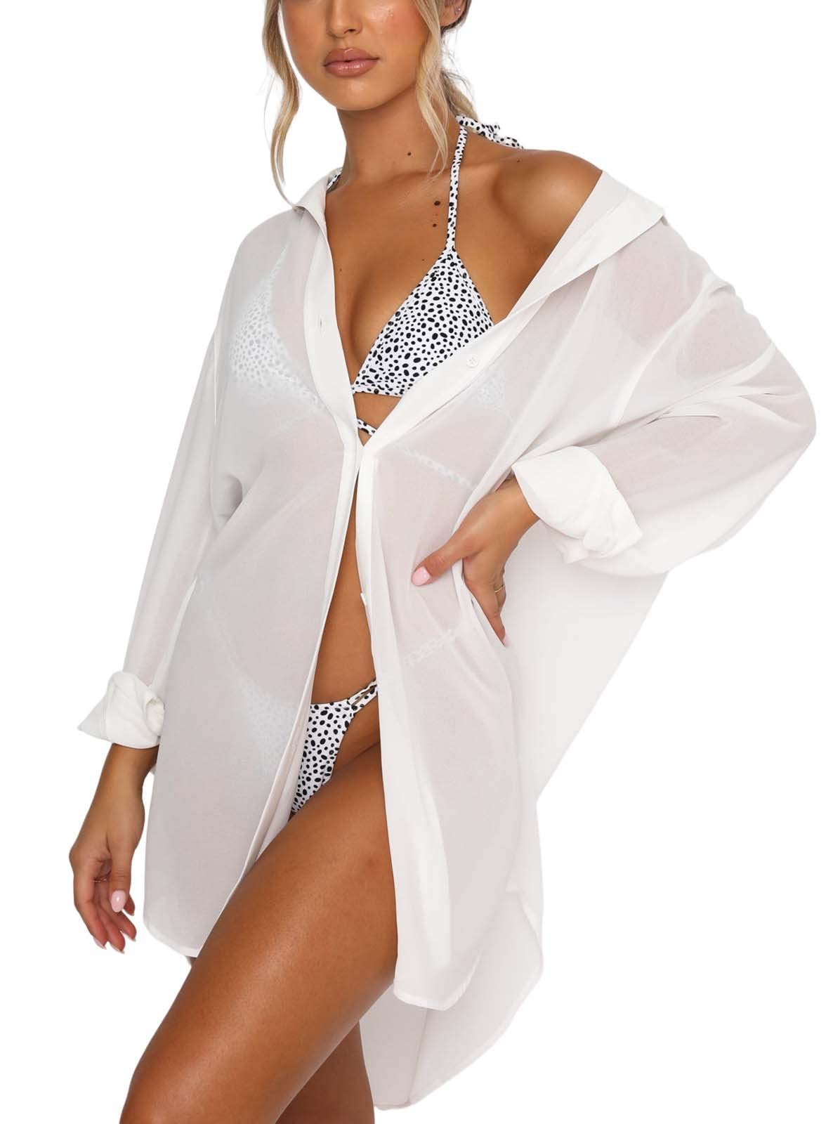 Women's Swimsuit Beach Cover Up White X-Large 5