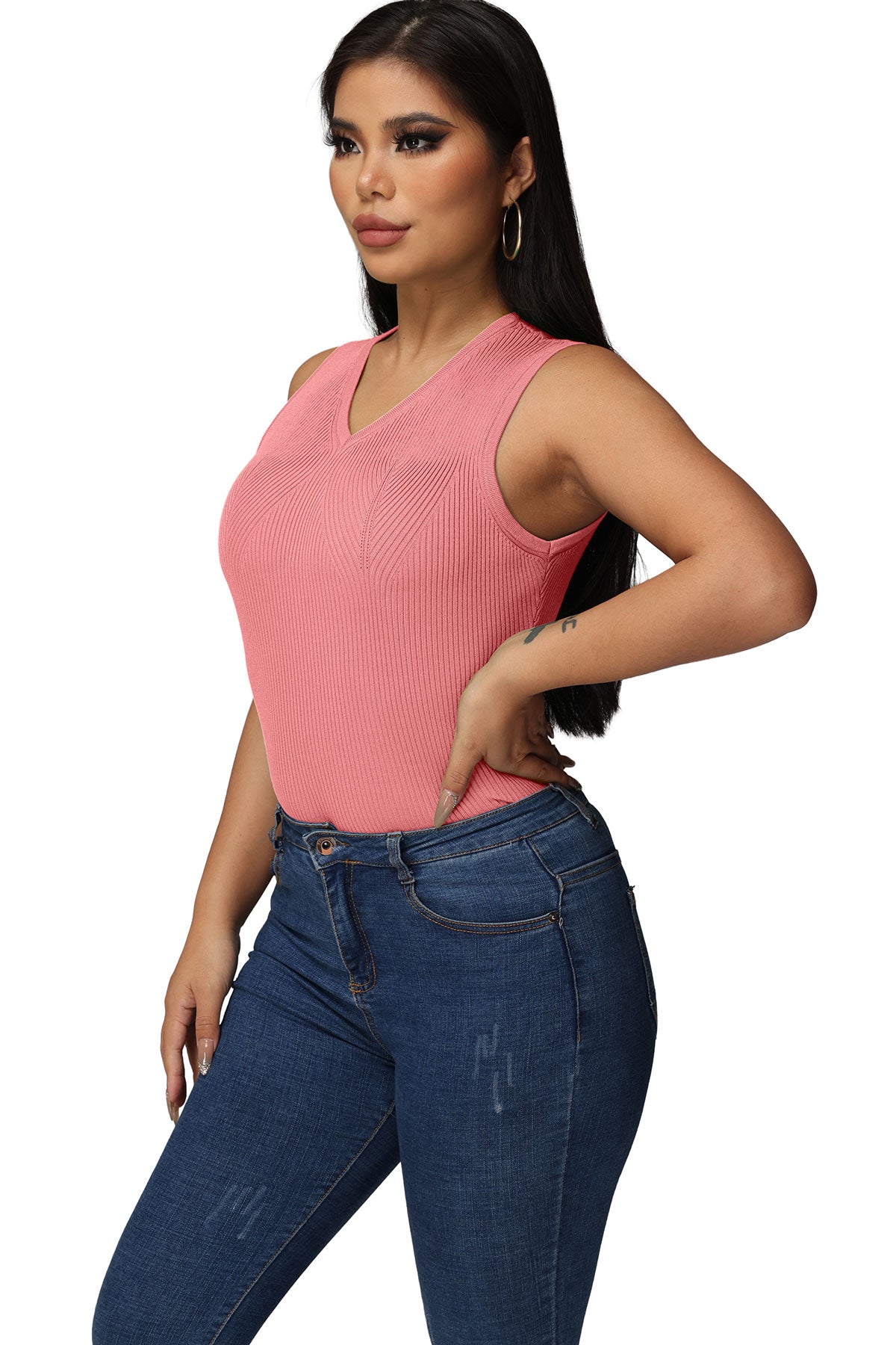 Tops de verano para mujer Sudadera acanalada 06-corales Medio 7