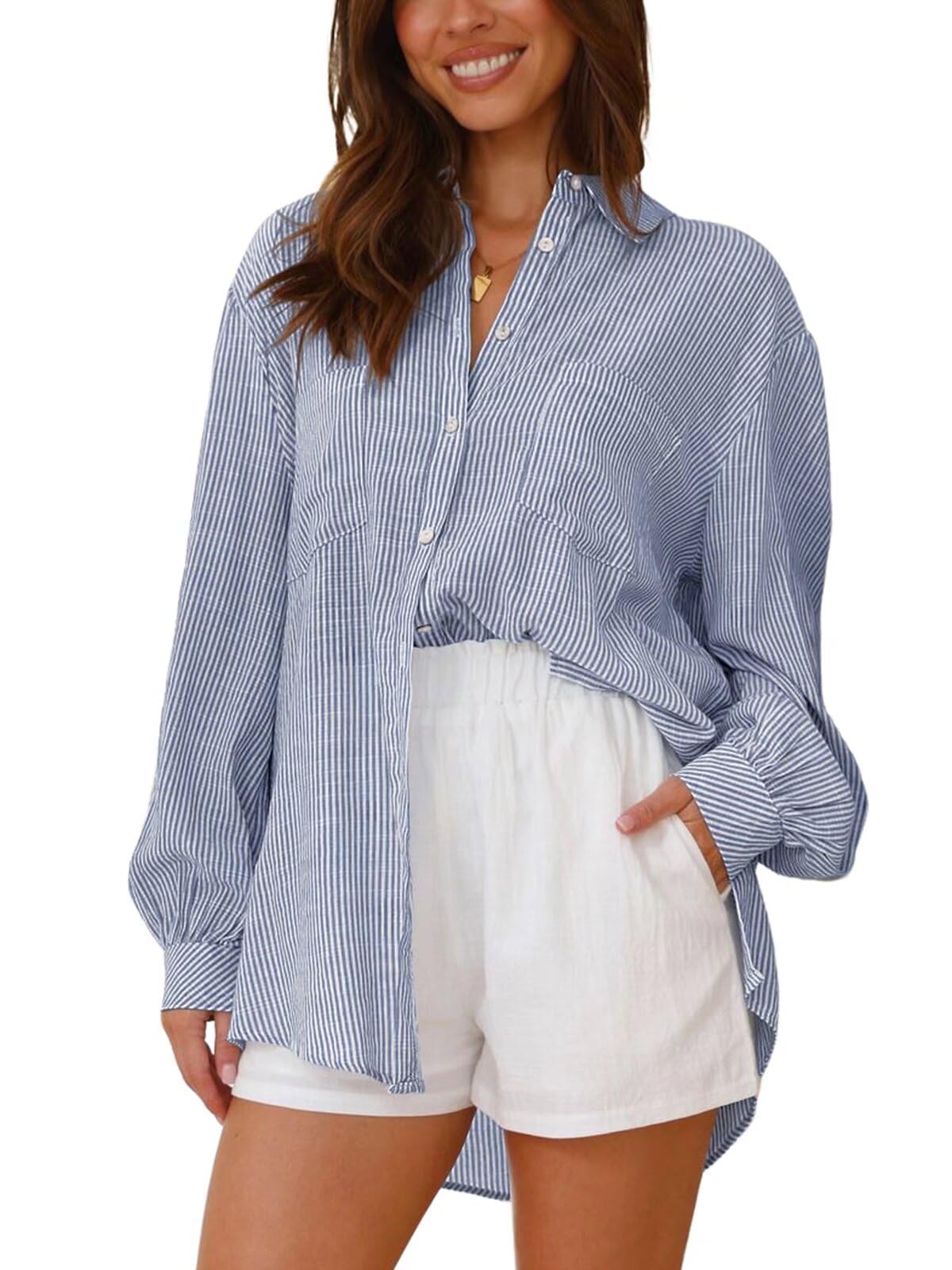 | WomenShort Sleeve Button Down Shirt | Dark Bule | Medium | 1 |