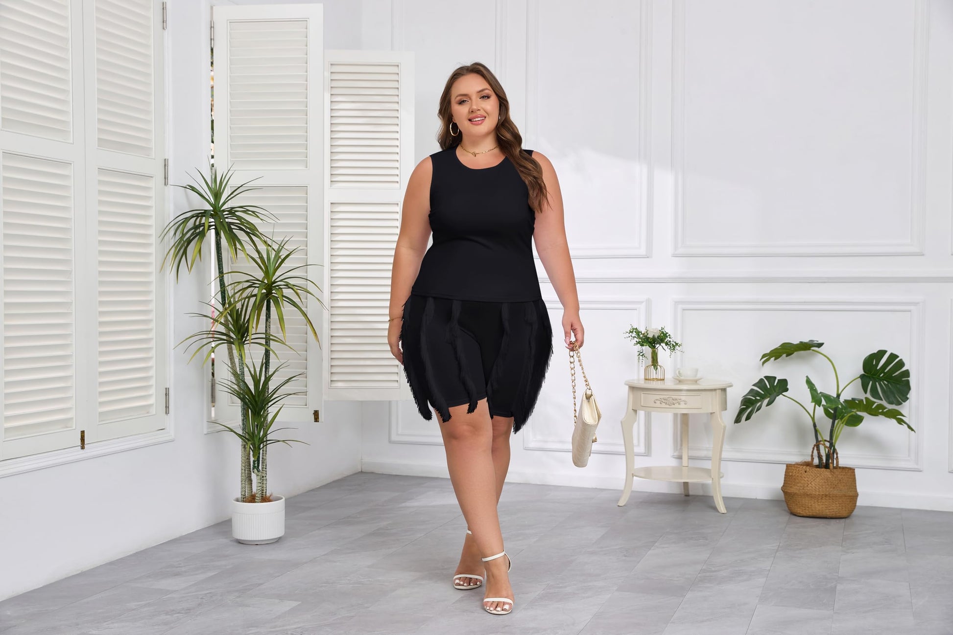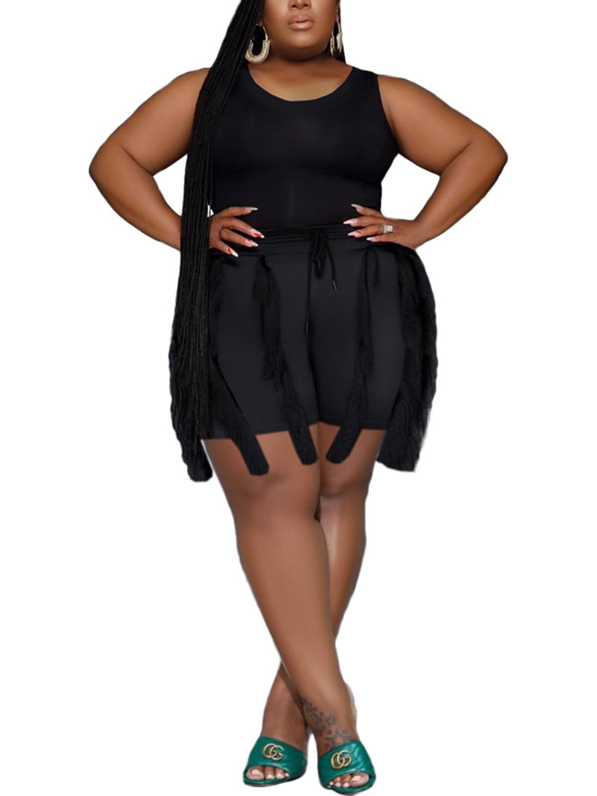 plus size summer tassel shorts sets Black 4X-Large Plus 9