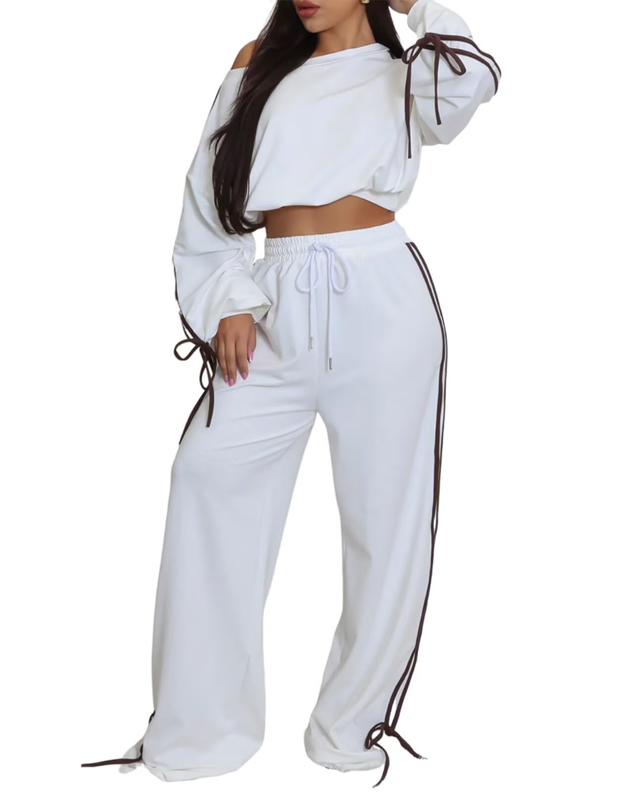 Womens Off Shoulder Tracksuits Set White X-Large 2