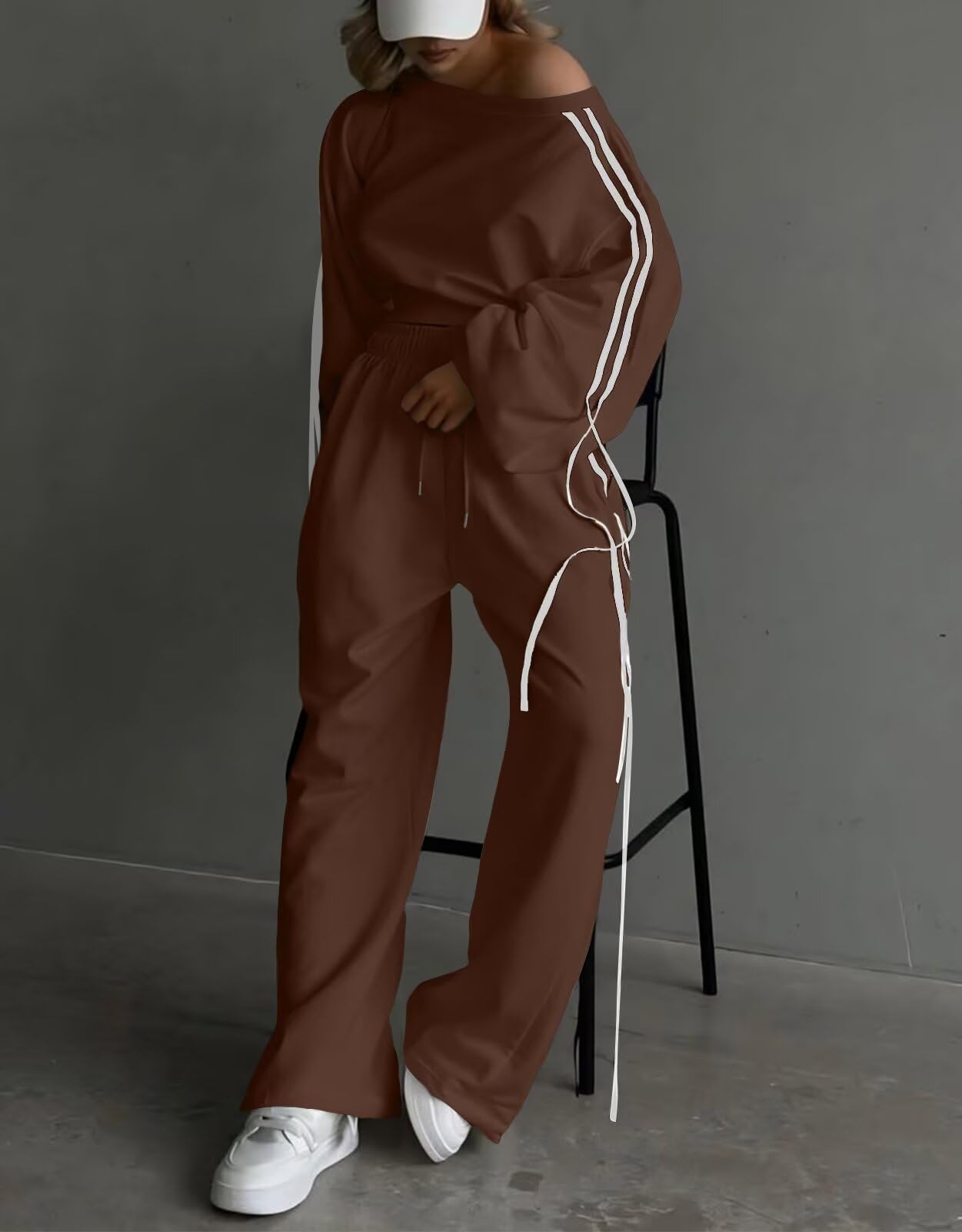 Womens Off Shoulder Tracksuits Set Coffee Medium 2