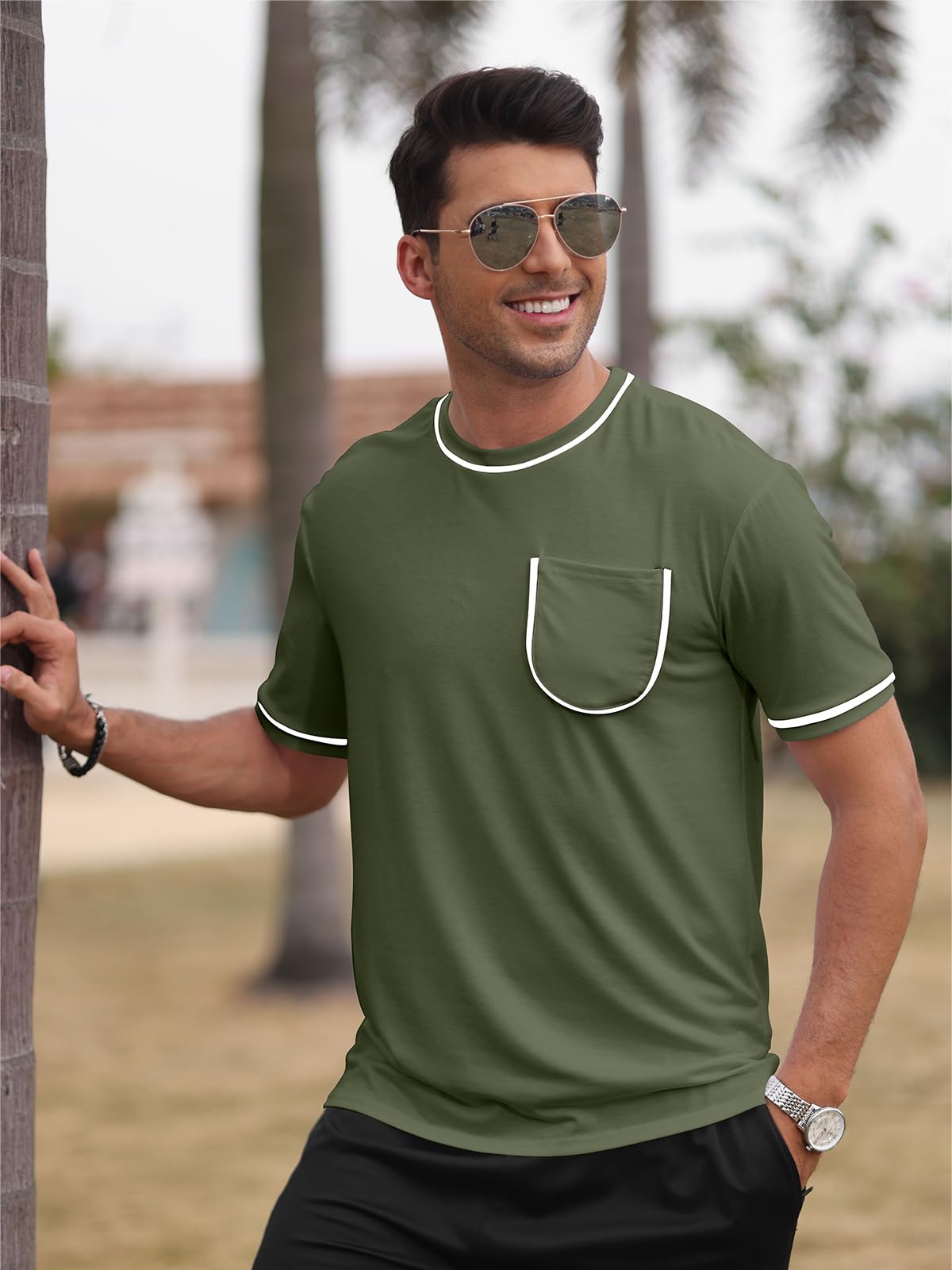 Mens Casual Short Sleeve T-Shirts Army Green X-Large 5