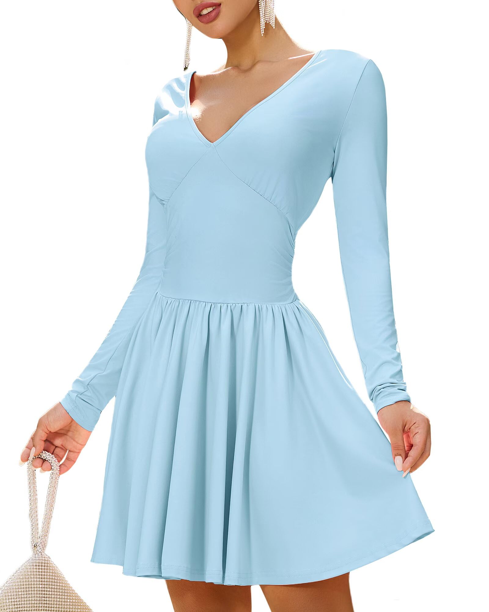 | Sexy Long Sleeve V Neck Mini Dress | Blue | X-Large | 4 |