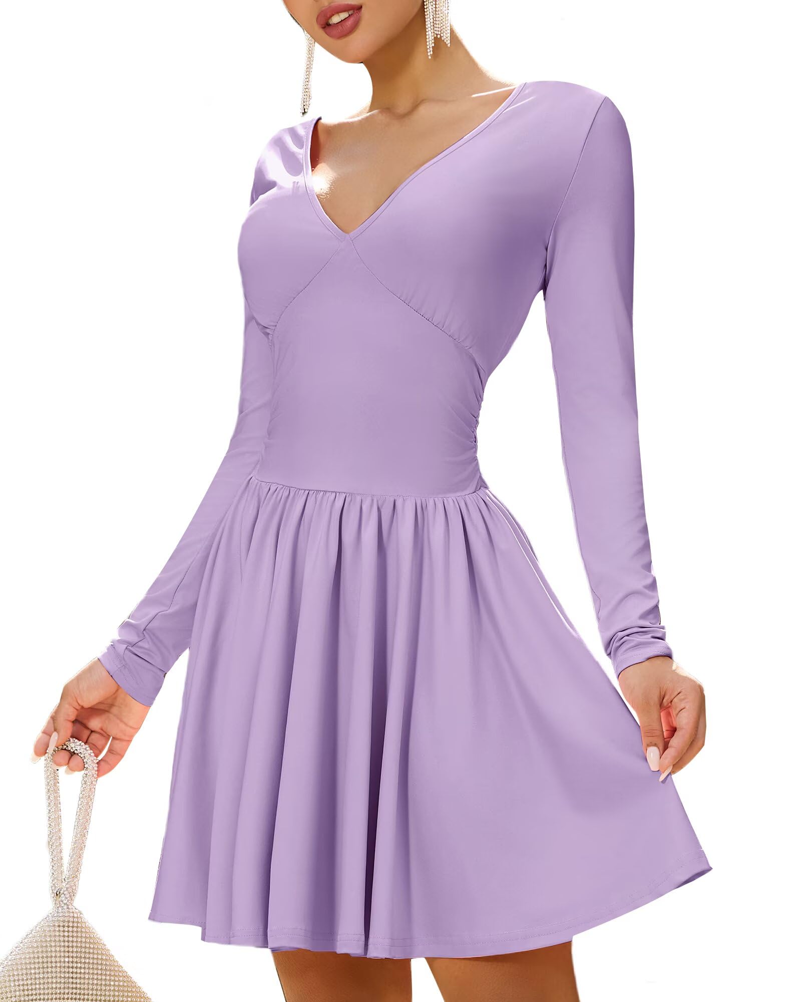 | Sexy Long Sleeve V Neck Mini Dress | Purple | X-Large | 4 |