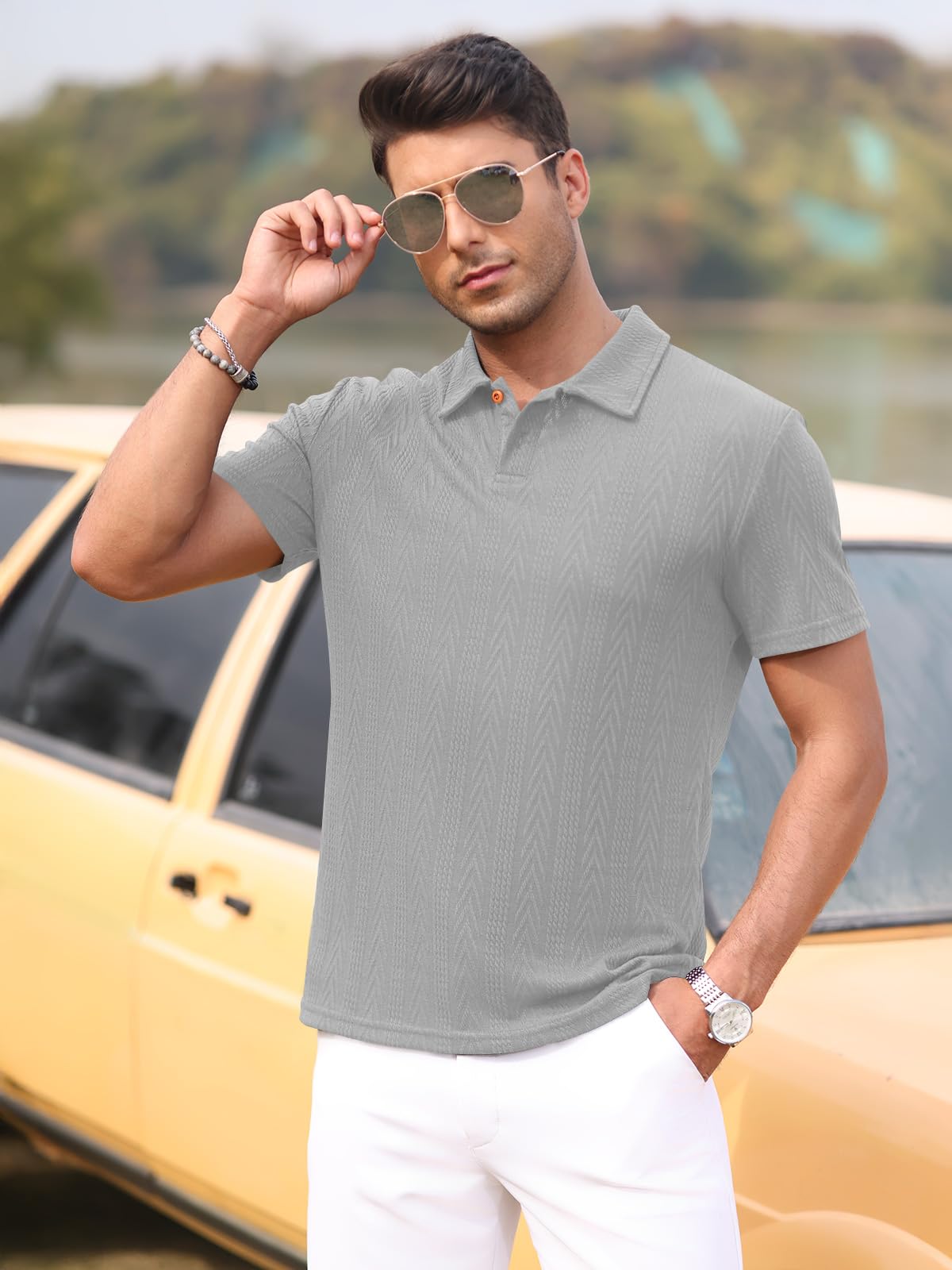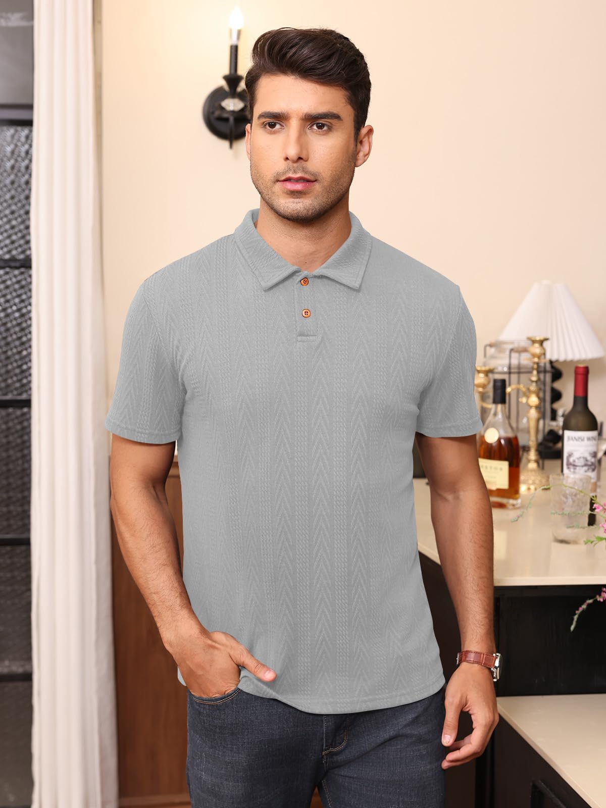 Mens Textured Polo Shirts Dark Grey XX-Large 5