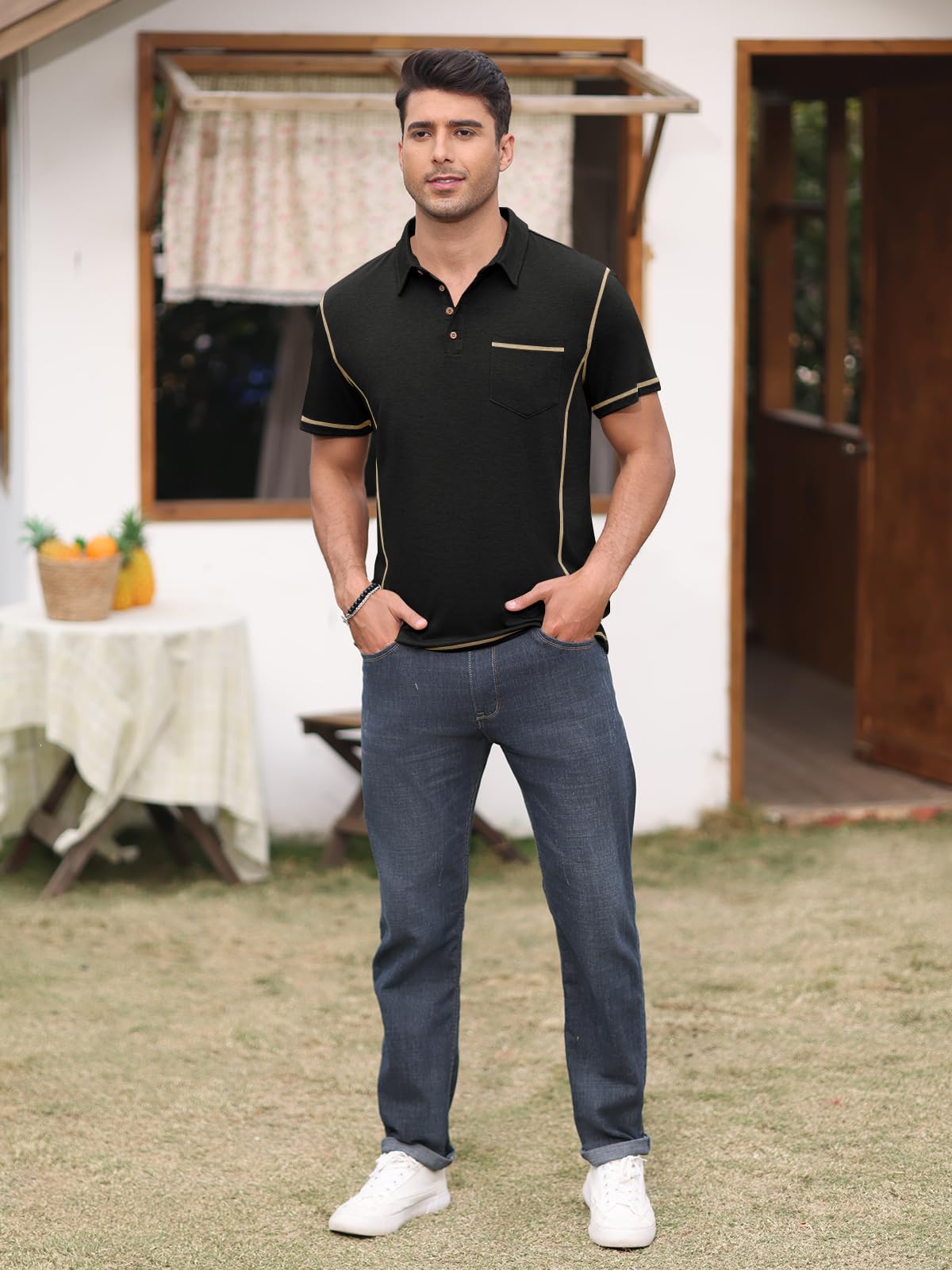 Mens Casual Polo with Pocket Light Blue Medium 1