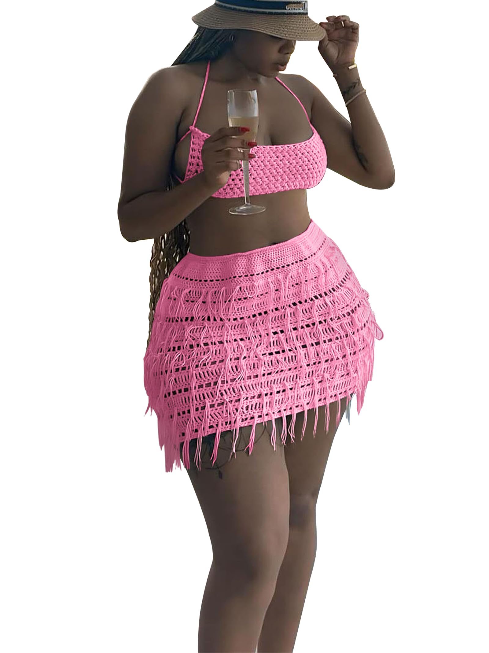 2xl women 2 piece tassel dress set Pink XX-Large 1