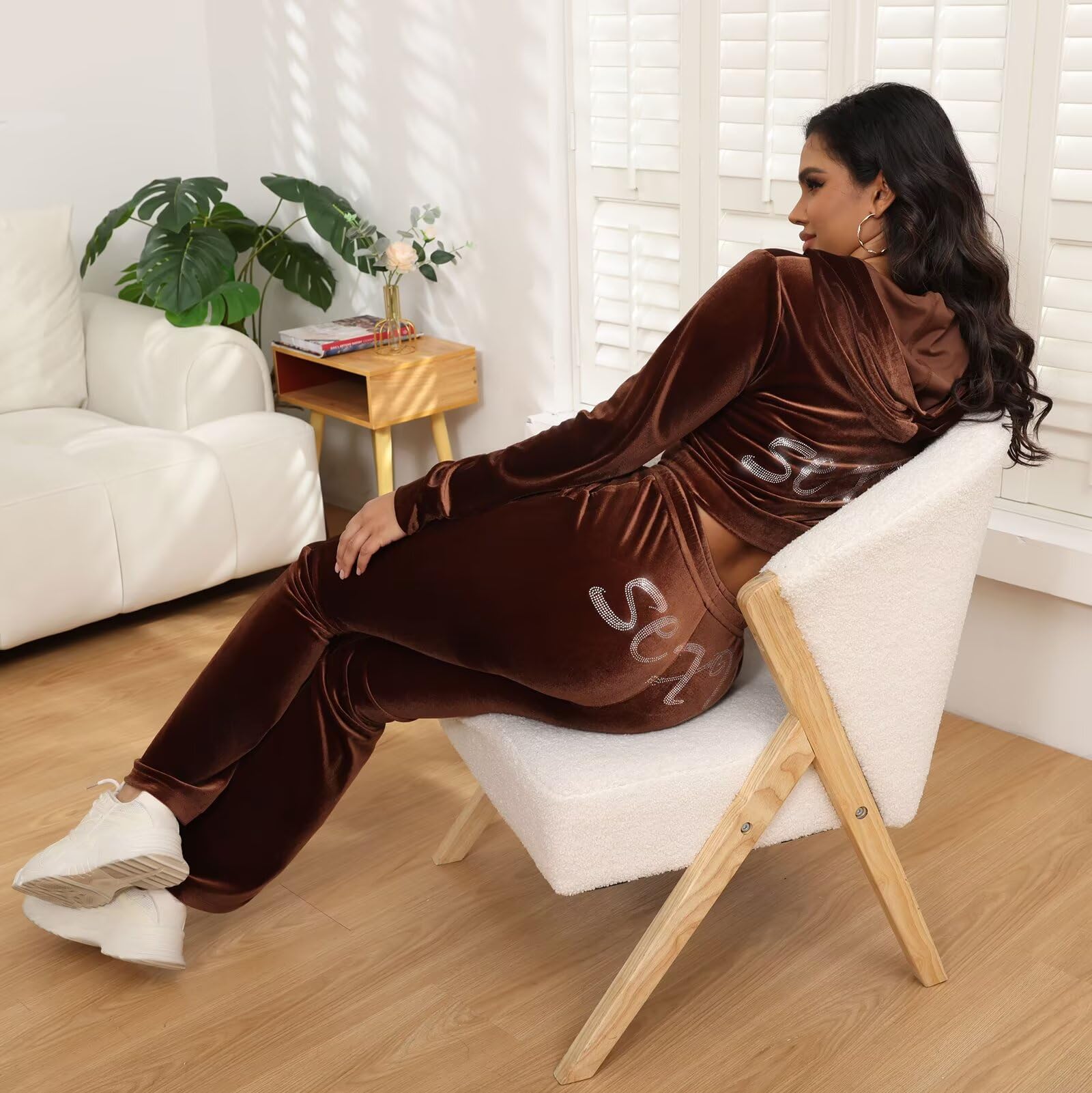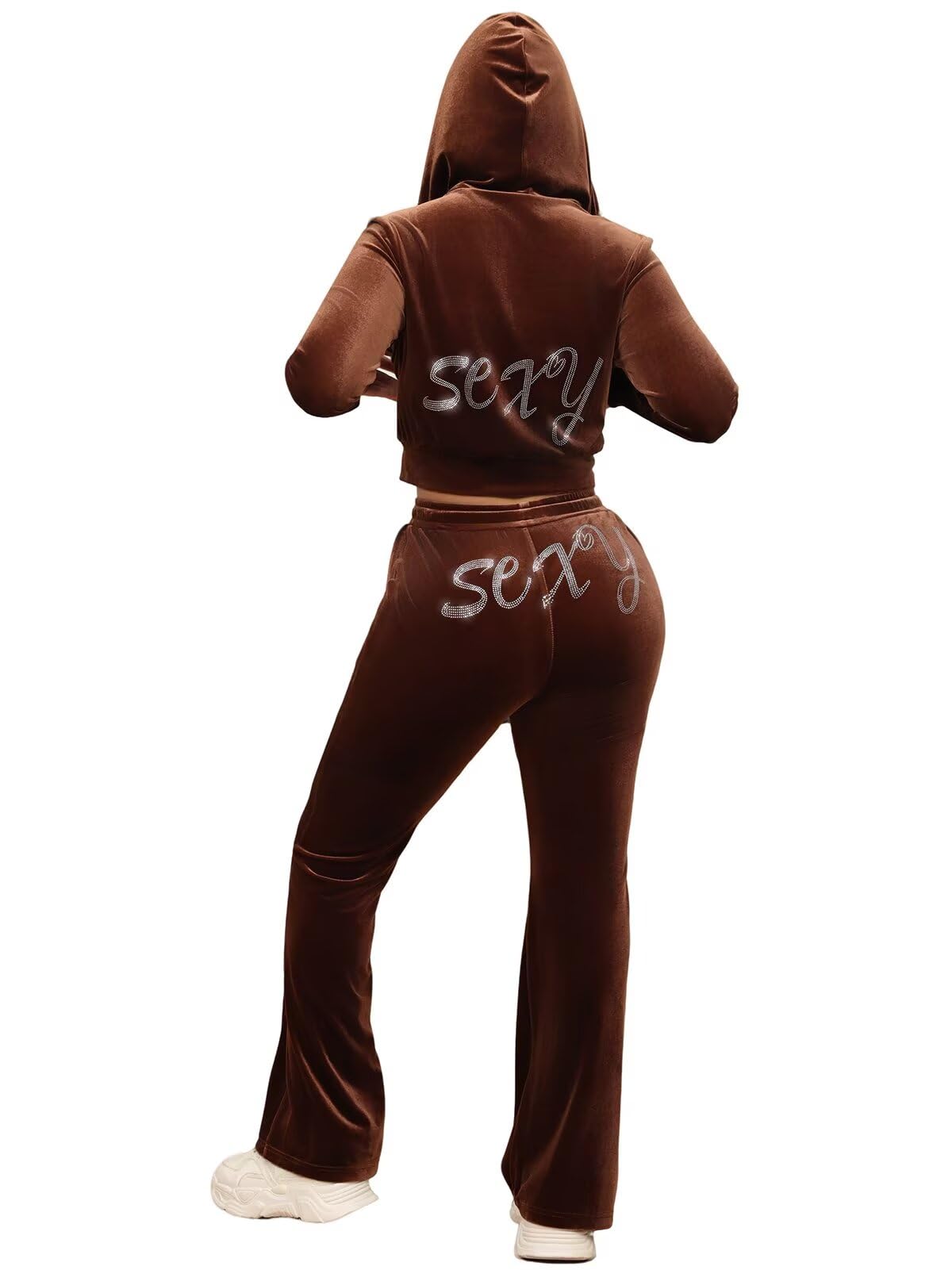 | Women Velvet Sexy 2 Piece Sets | Brown | Small | 3 |