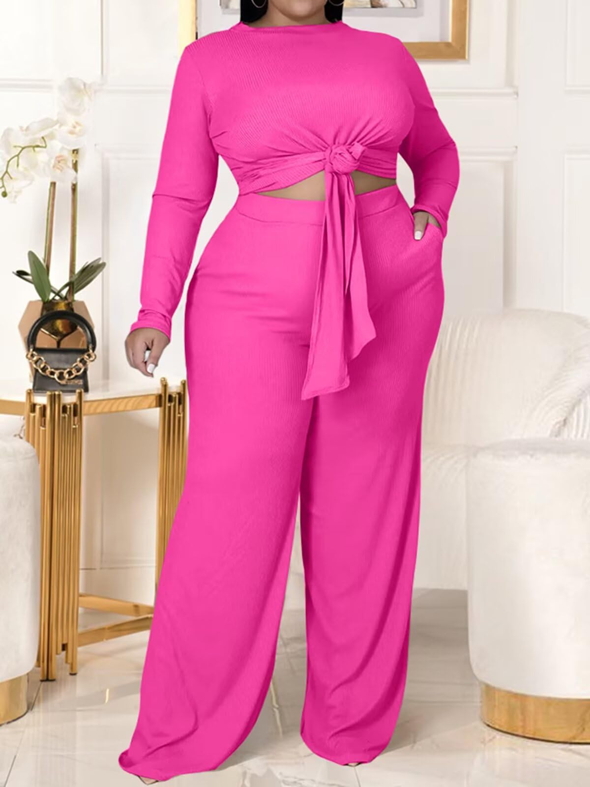 | Plus Size 2 Piece Wide Leg Outfits | Rose Red | 4X-Large Plus | 2 |