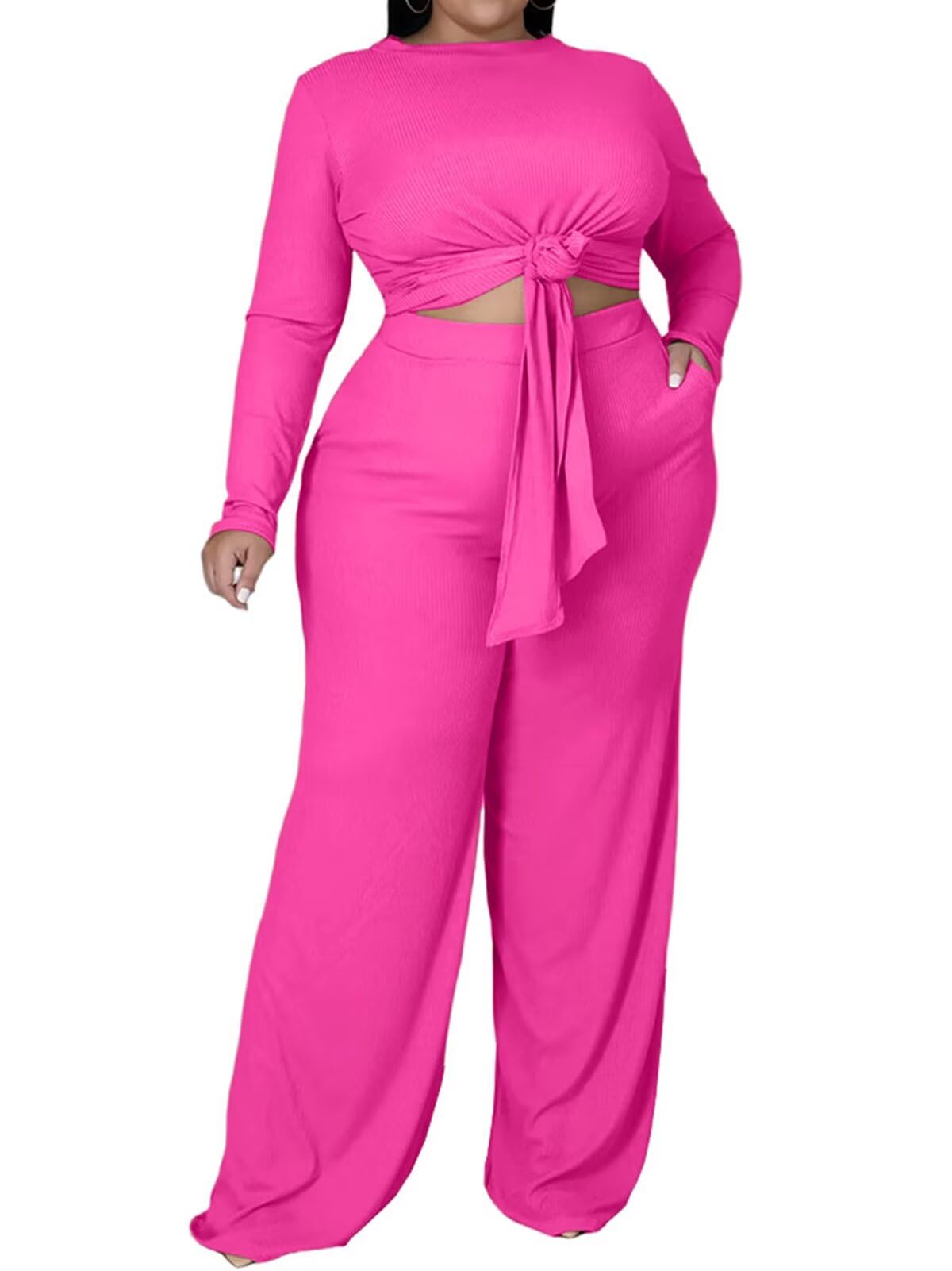 | Plus 2 Piece Tie Wide Leg Outfits | Rose Red | 4X-Large Plus | 1 |