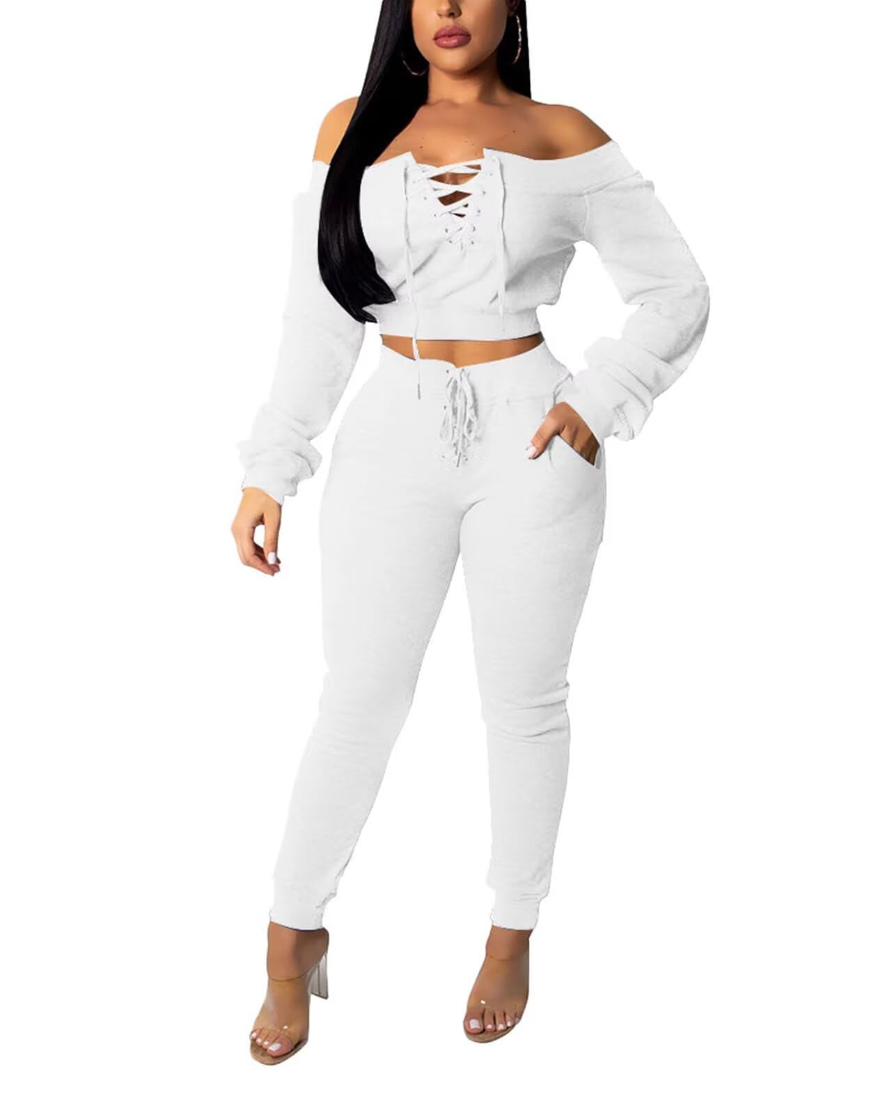 | Womens 2 Piece Outfits Pants Sets | White | X-Large | 2 |