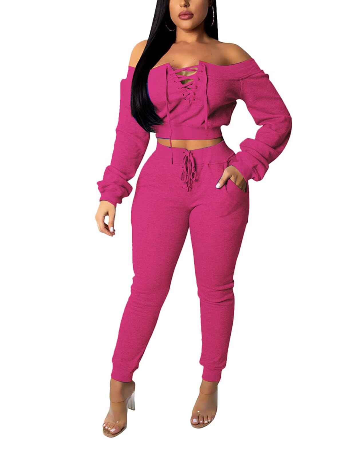 | Womens 2 Piece Outfits Pants Sets | Rose Red | Medium | 2 |