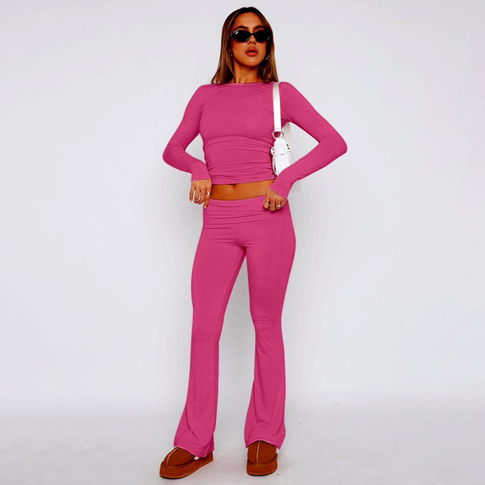Women's 2 Piece Lounge Outfits Hot Pink Large 4