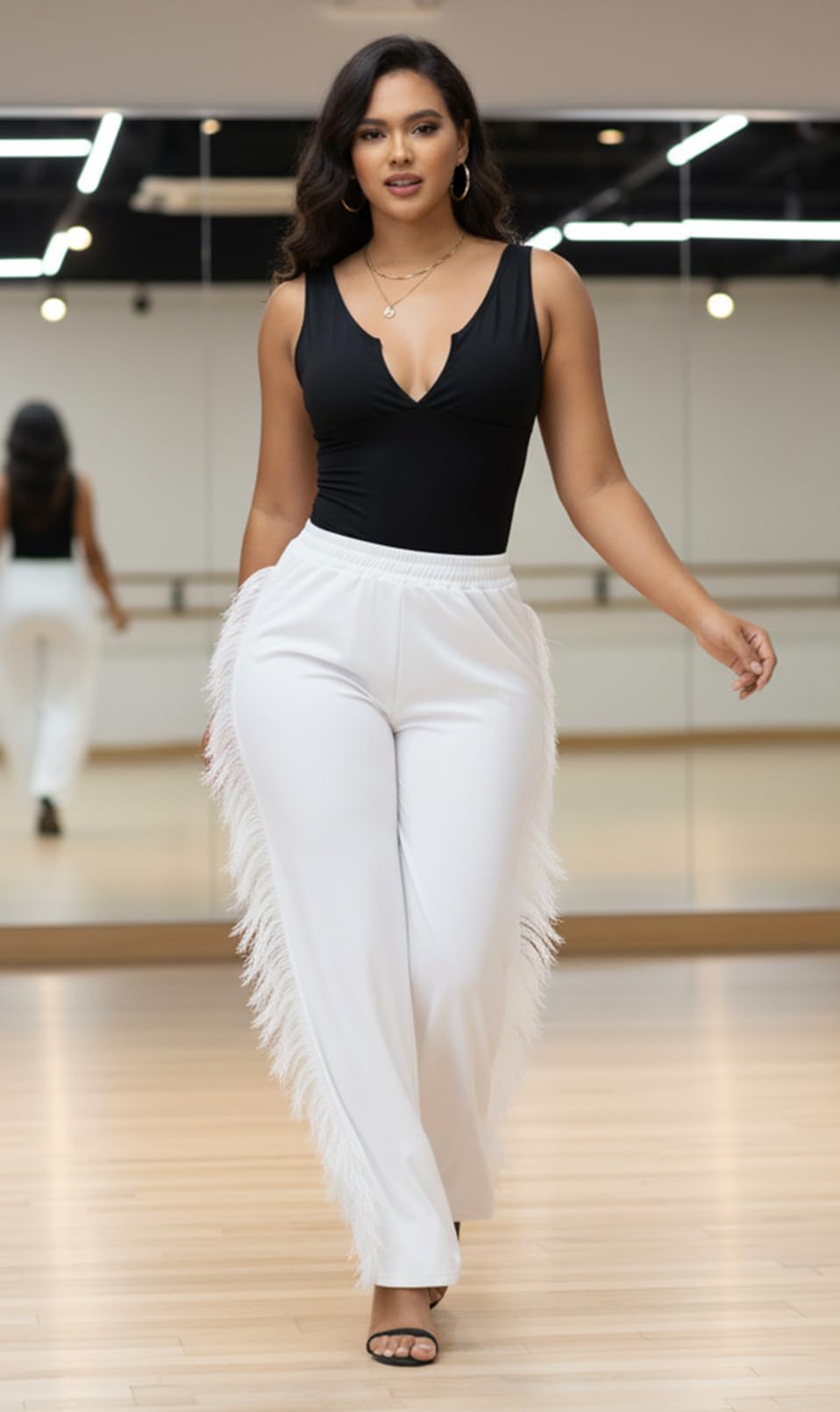 Women's Fringe Pants Black Large 4