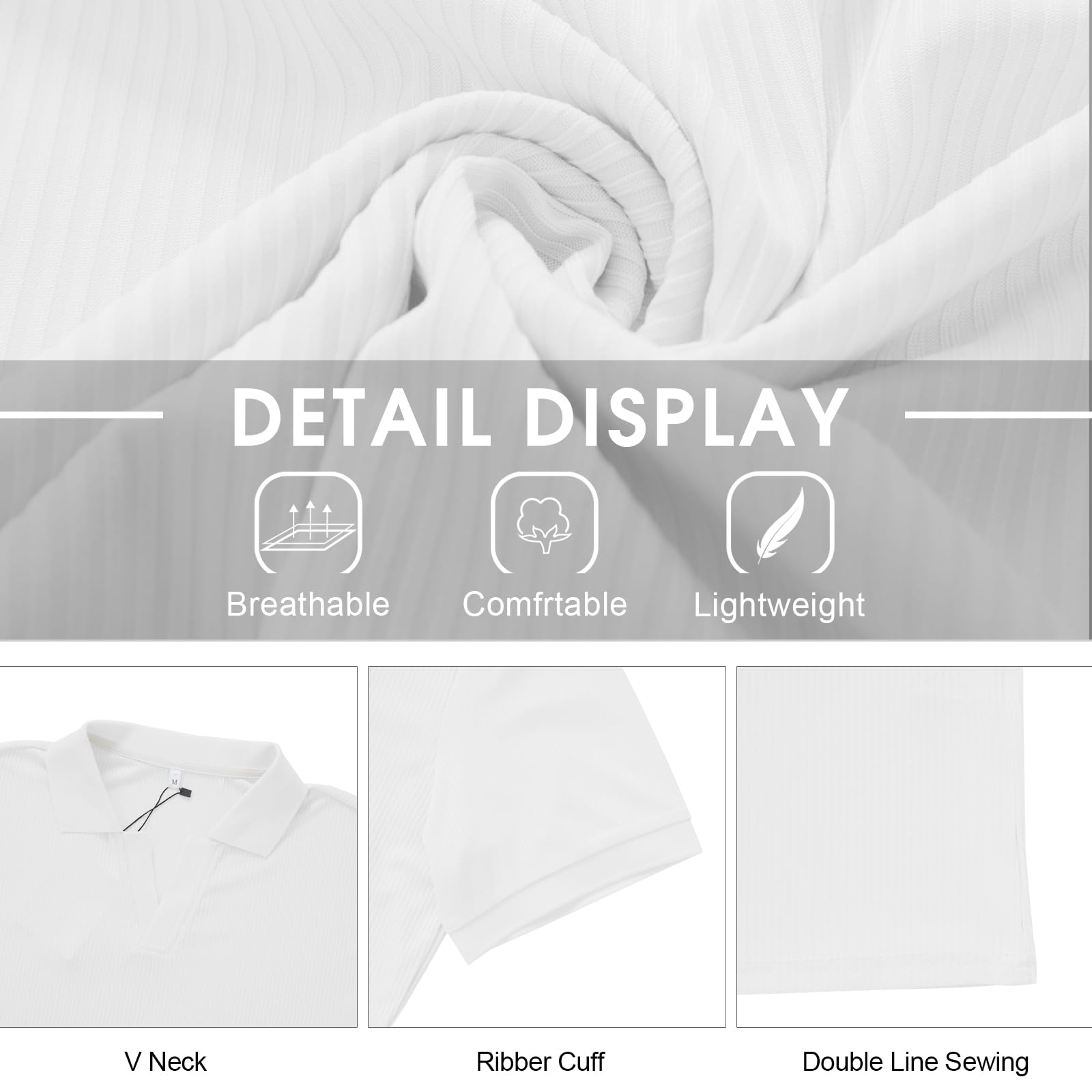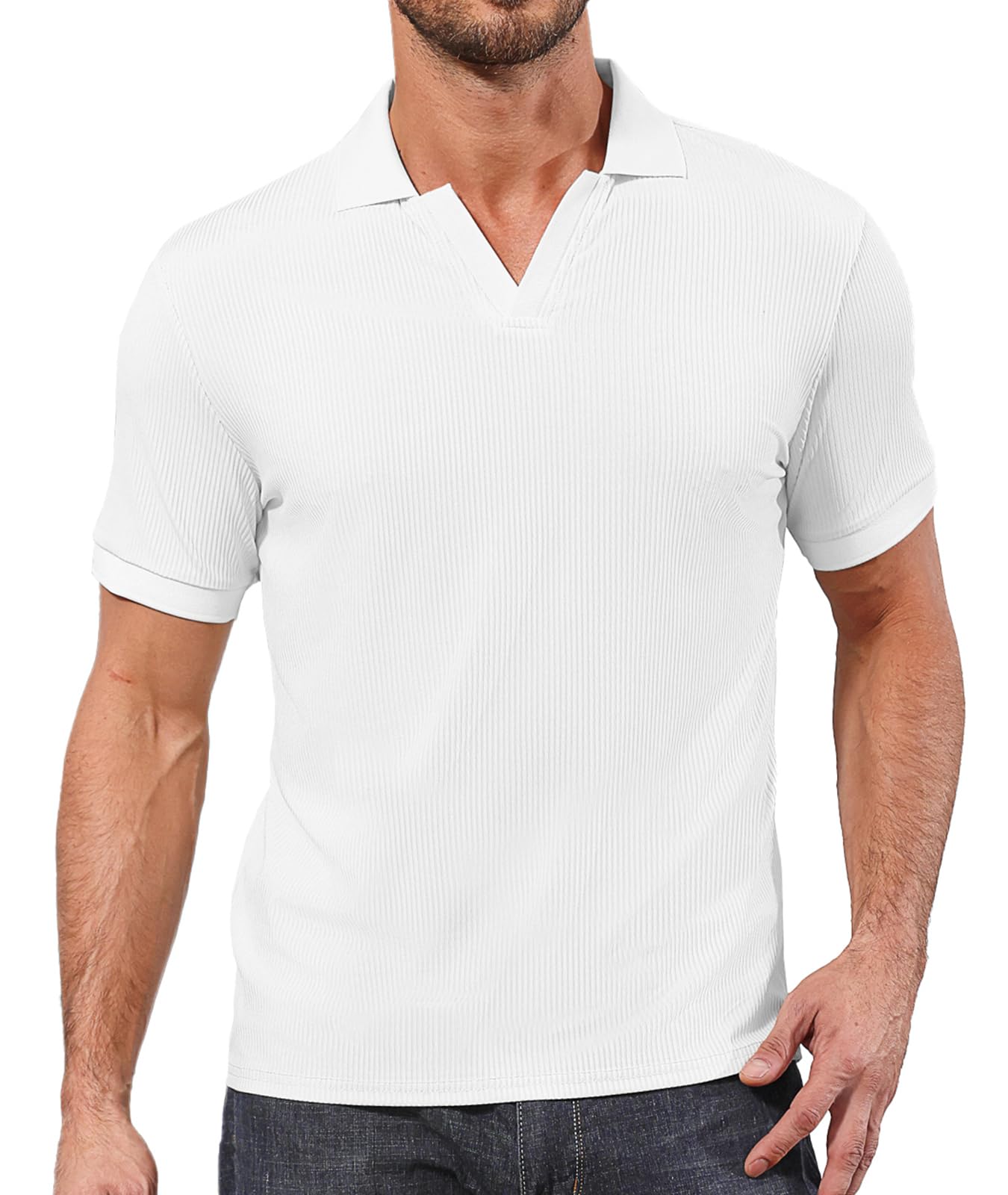 Mens V Neck Polo Shirts White X-Large 8