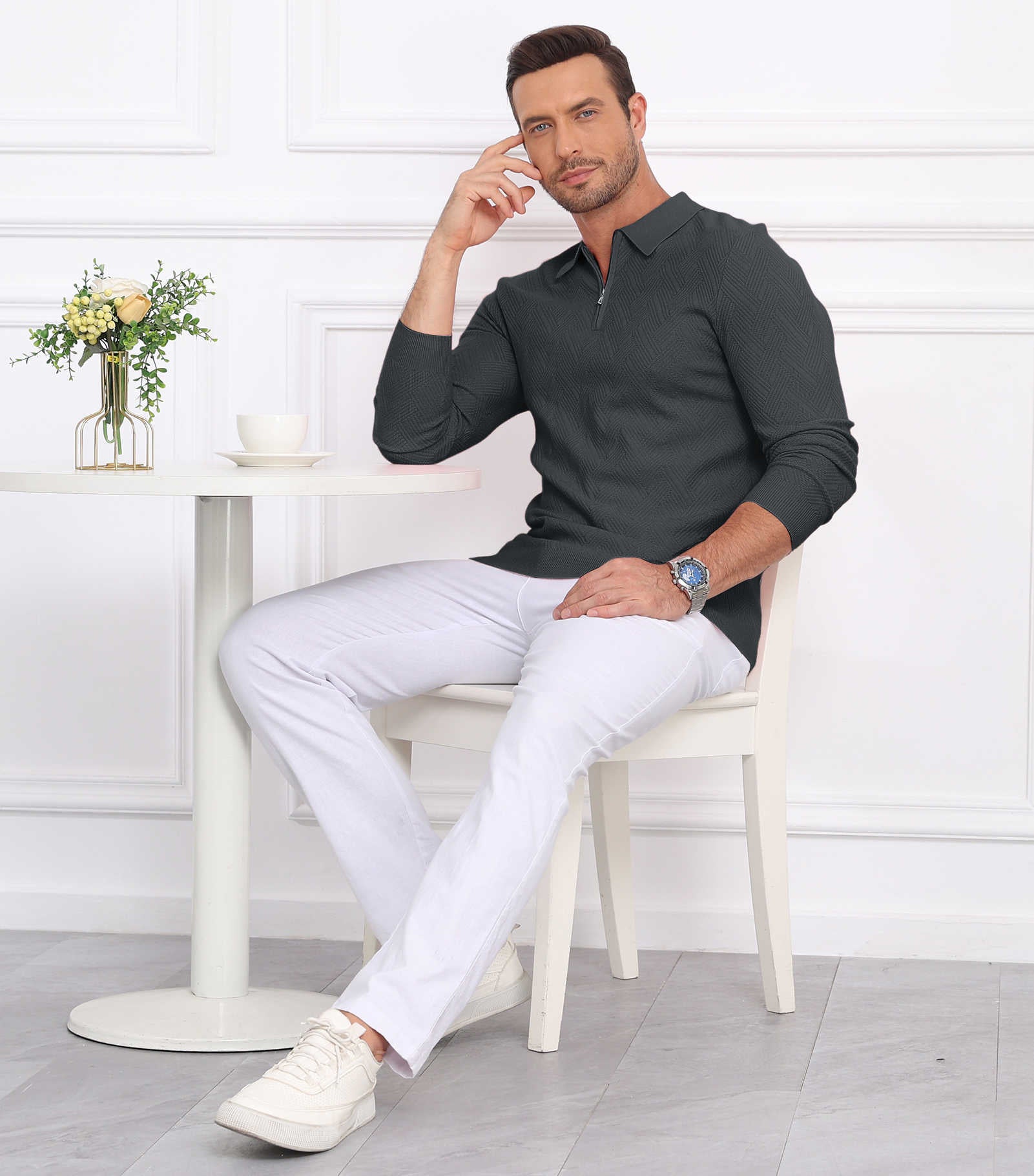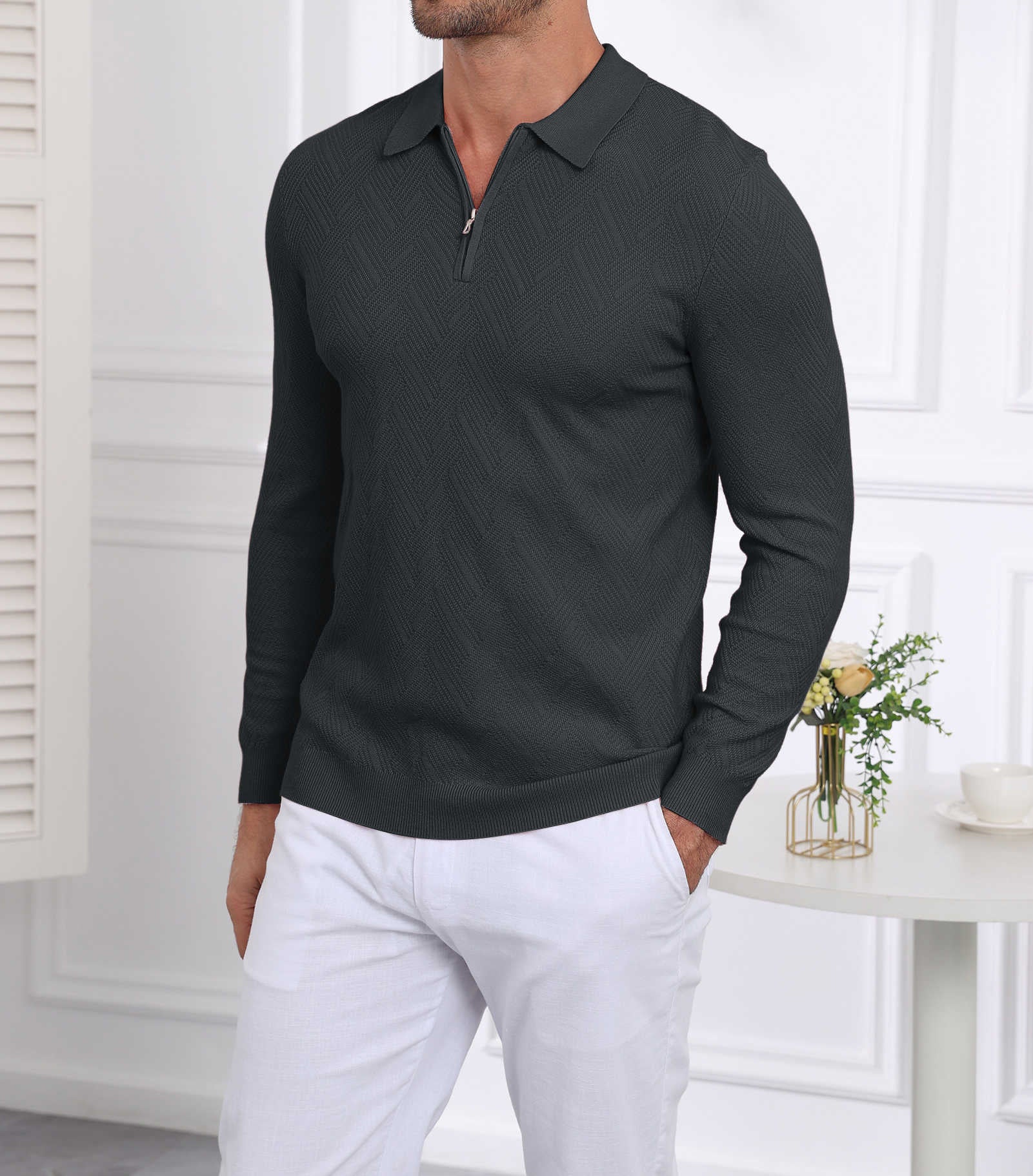 | Mens Collared Sweater Slim Fit | Dark Grey | XX-Large | 12 |