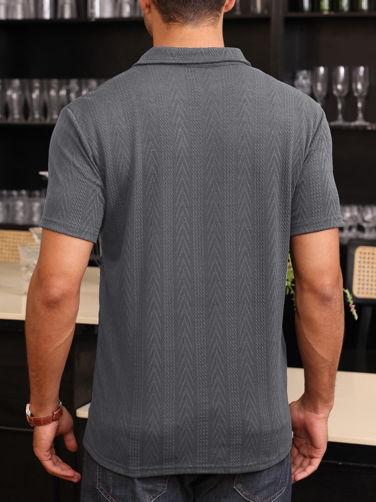 Mens Short Sleeve Polo Shirts Dark Grey Large 12